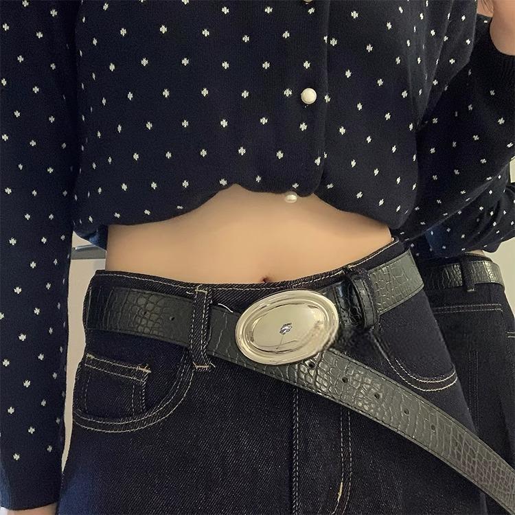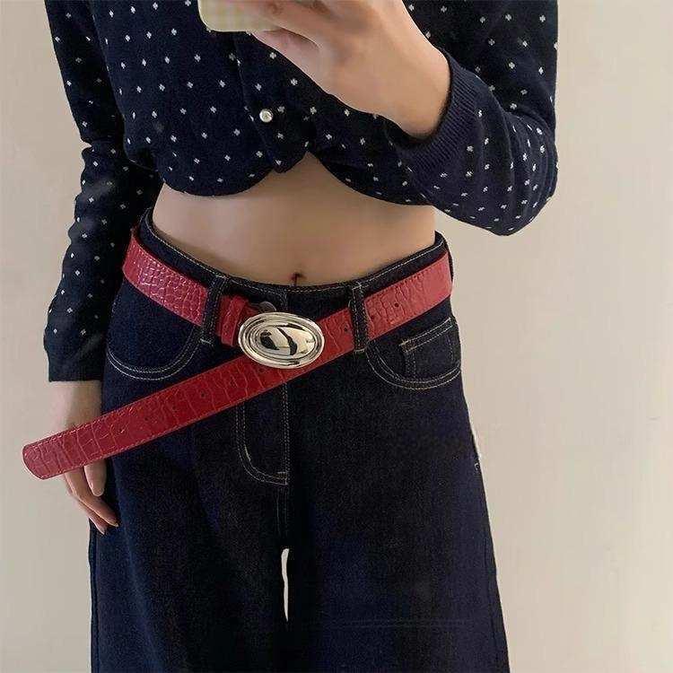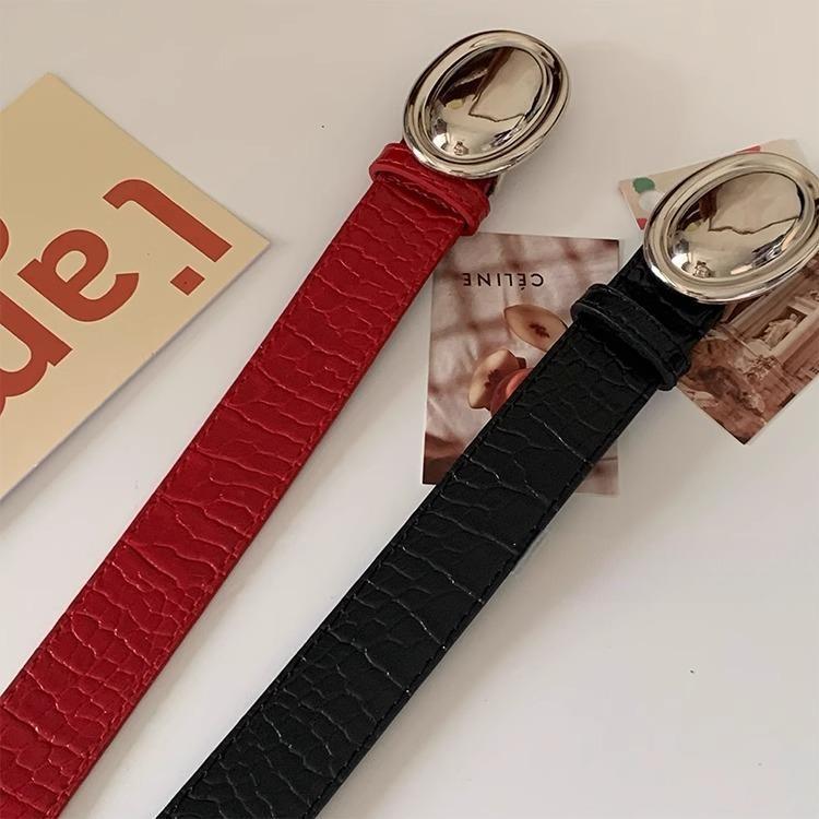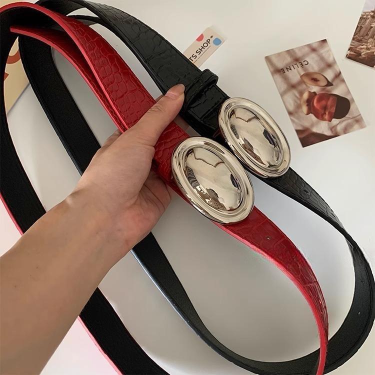简约椭圆时尚显眼红色四季百搭休闲辣妹腰带简约银色扣高级感皮带