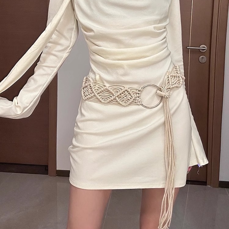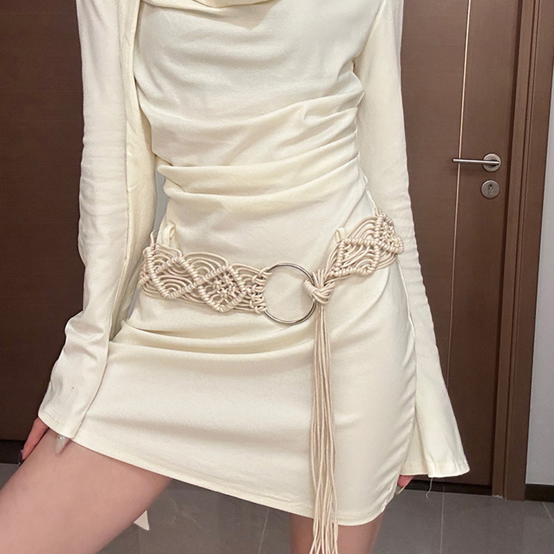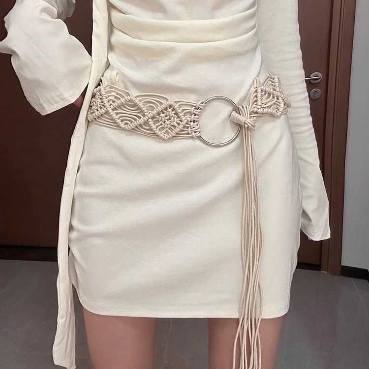 废土风编织带圆环腰绳女y2k复古可调节腰带设计感配裙子百搭皮带