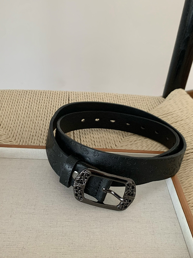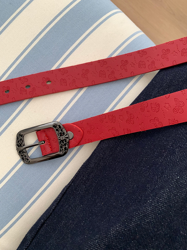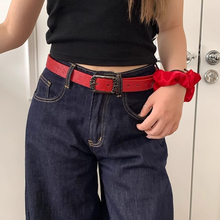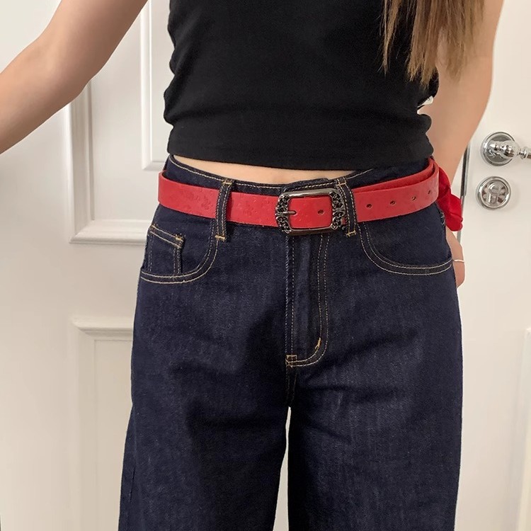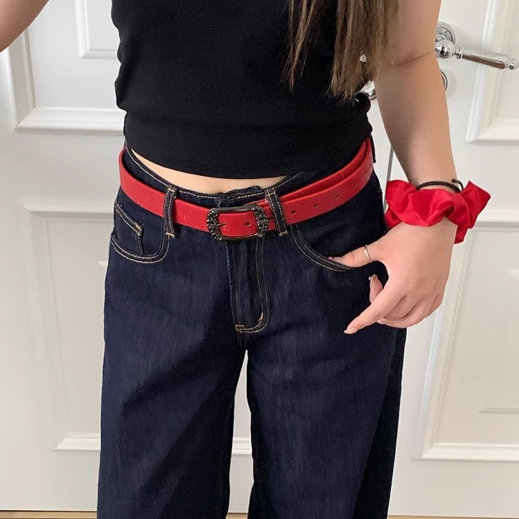 古着蝴蝶小众红色皮带女士2025年新款真皮腰带简约百搭牛仔裤装饰