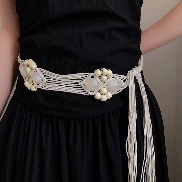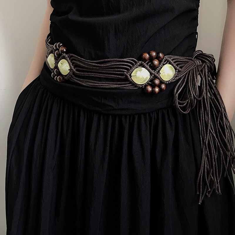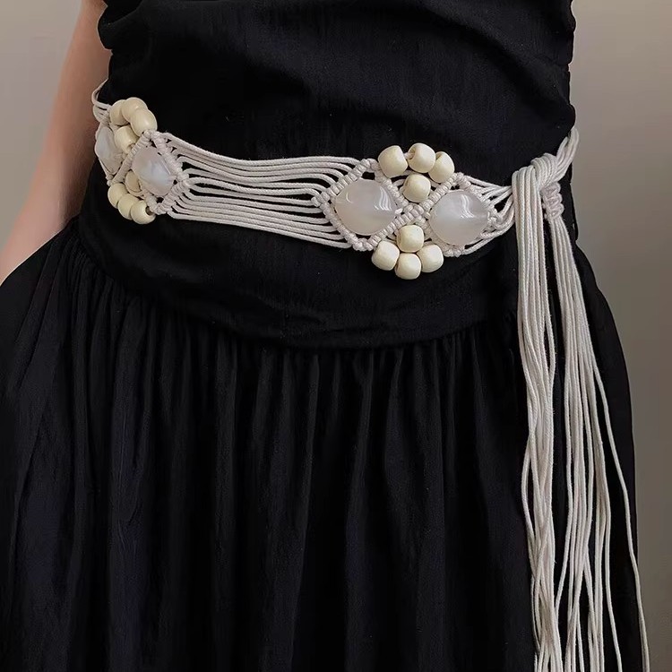 民族风流苏编织腰带女款复古百搭配连衣裙腰带小众设计感配饰腰绳