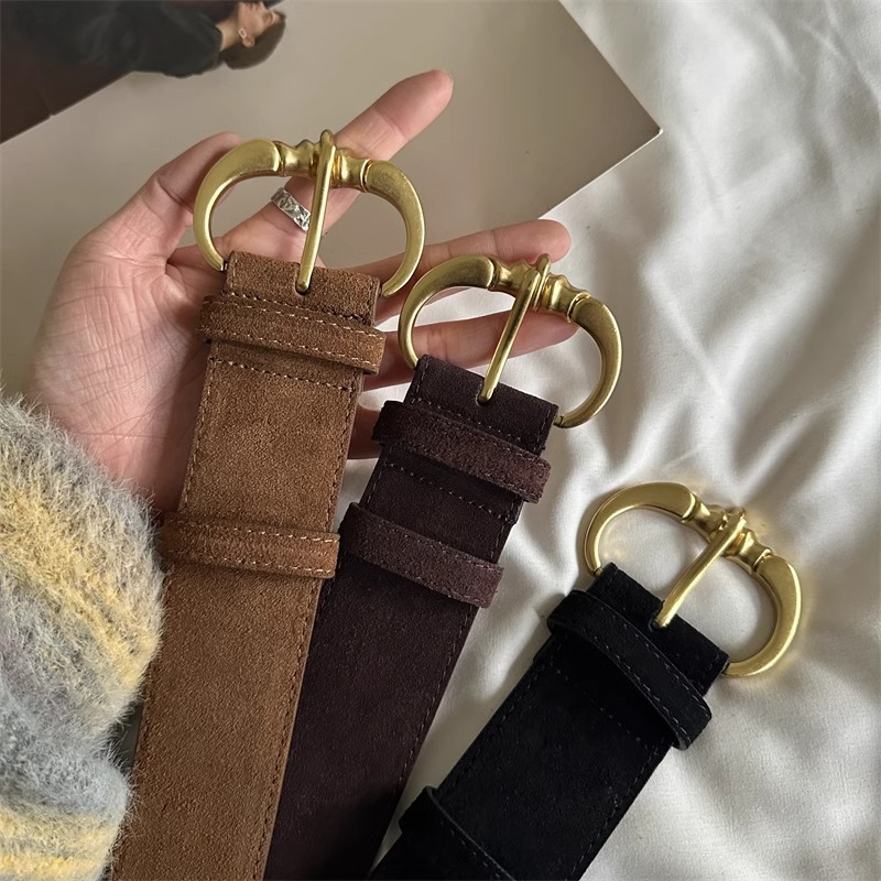 复古宽腰带女新款港风高级感牛皮绒针扣皮带时尚装饰大衣裙子腰封