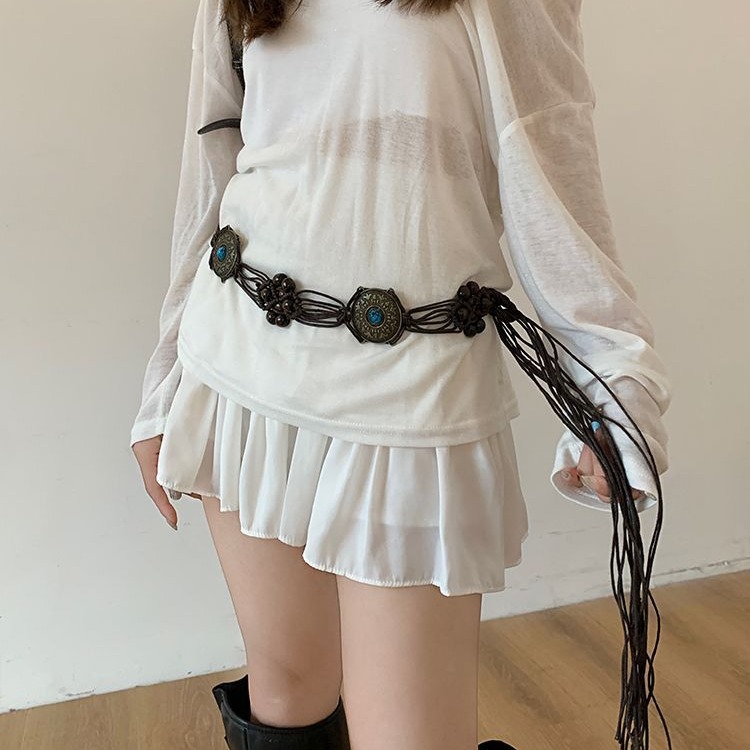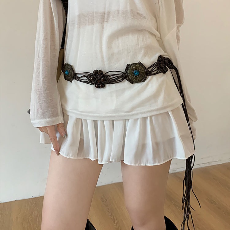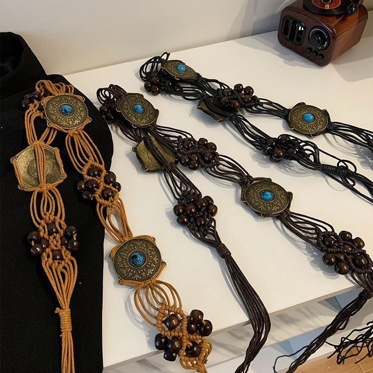 新款复古民族风流苏编织腰带女夏季装饰波西米亚连衣裙高级感腰链