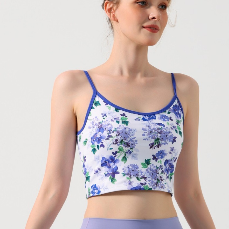 新款瑜伽服专业高端背心女带胸垫时尚性感健身房运动花色吊带文胸