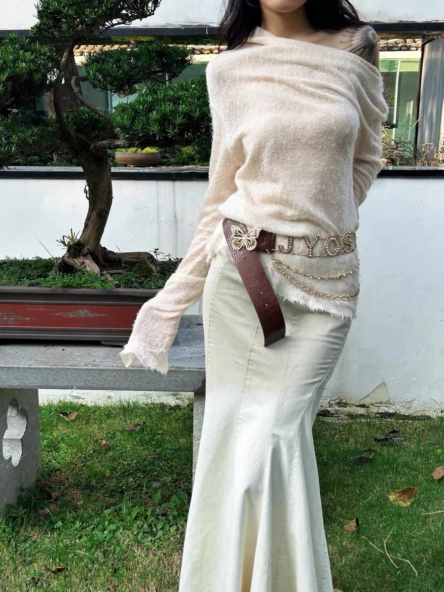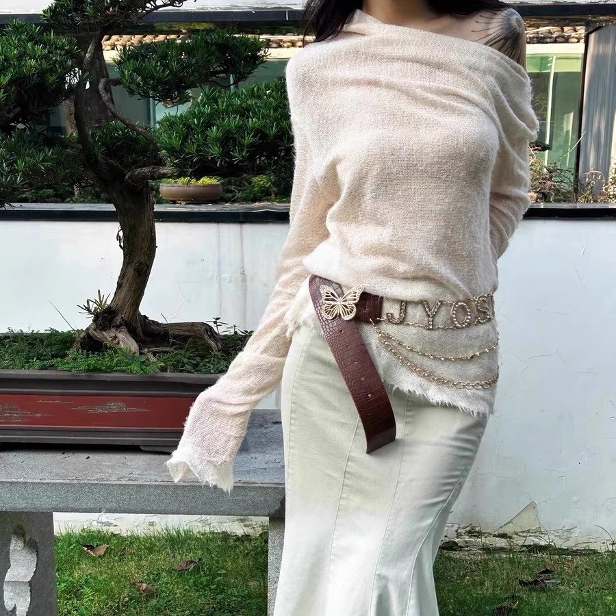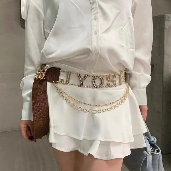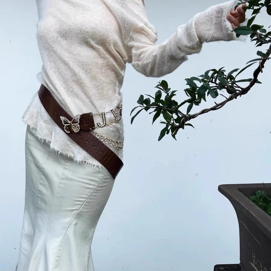 JYOSEI角色原创棕/黑色pu鳄鱼纹蝴蝶闪钻腰带女配饰