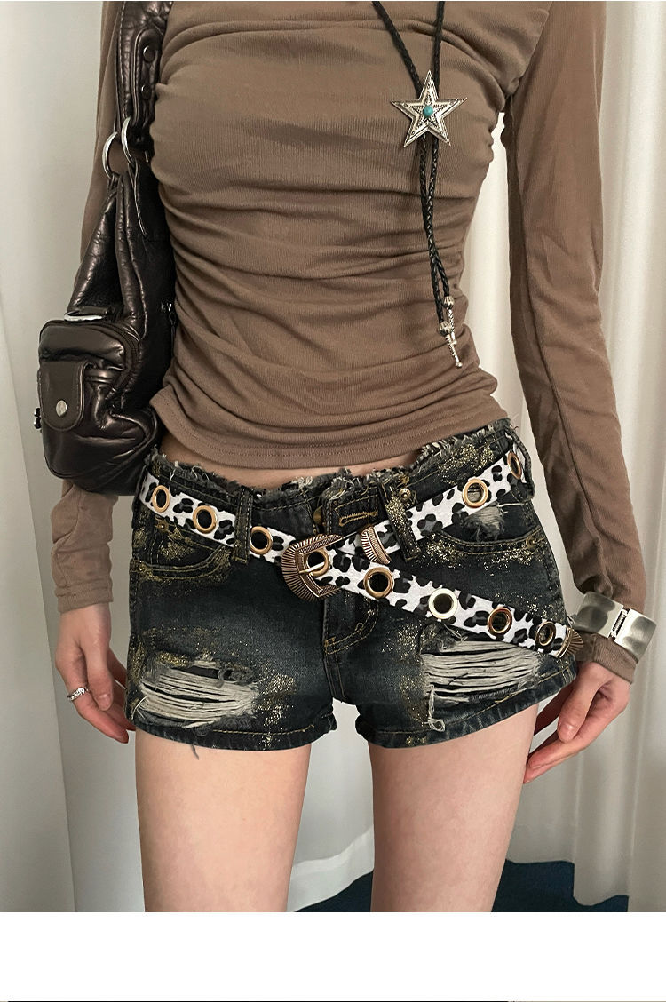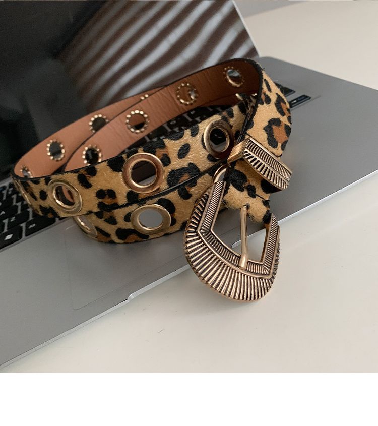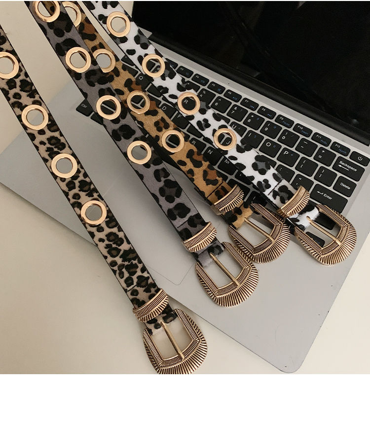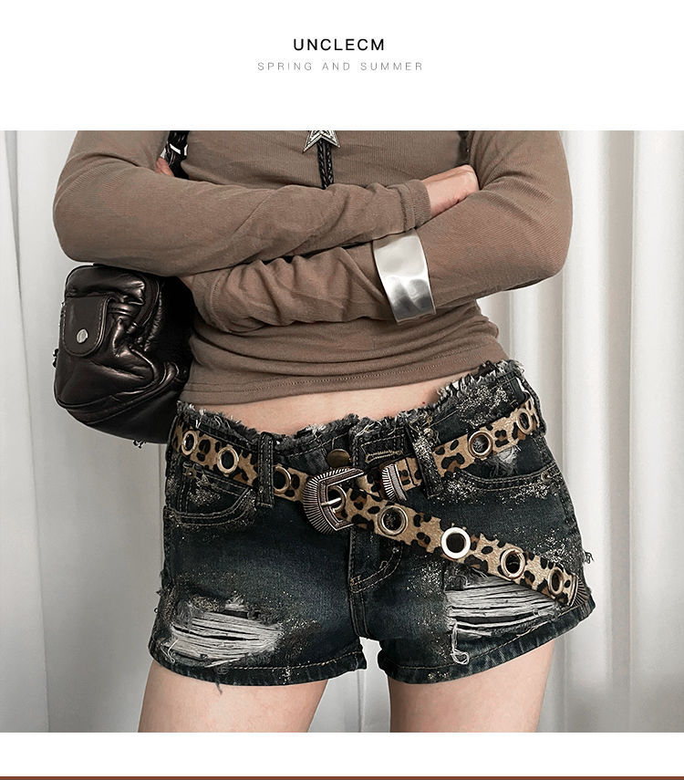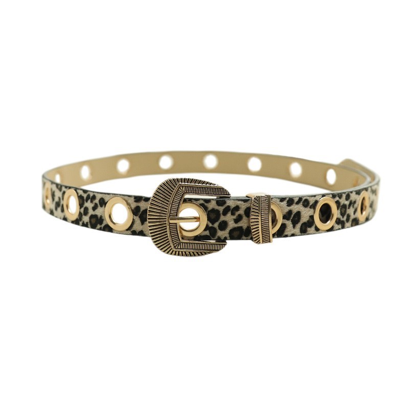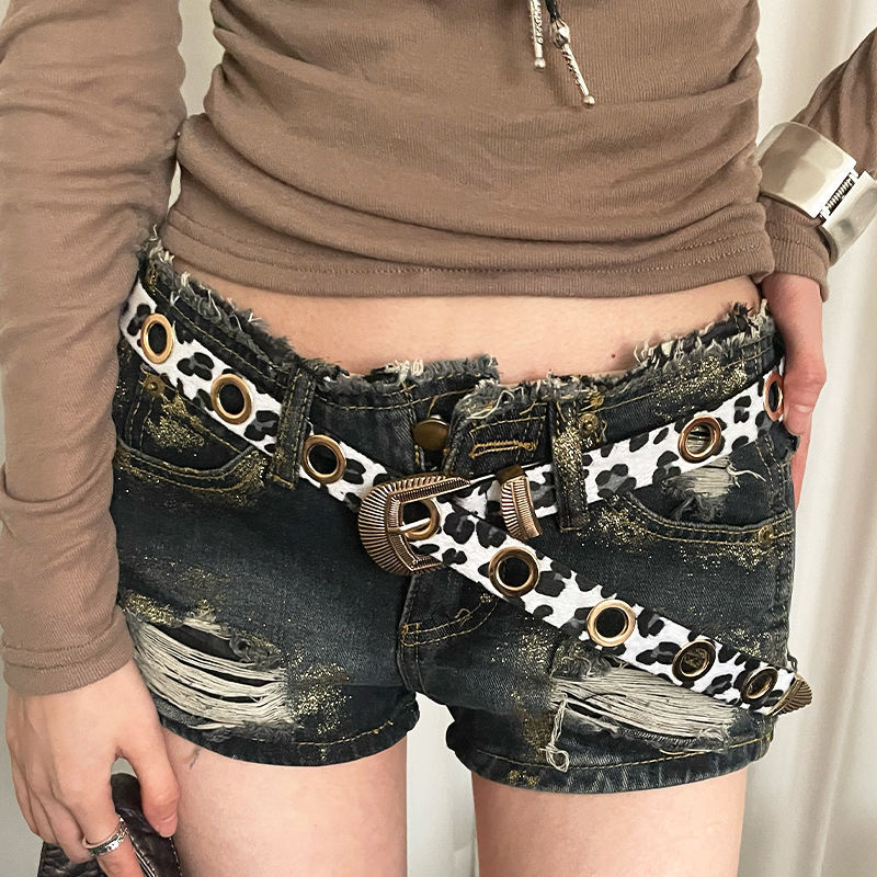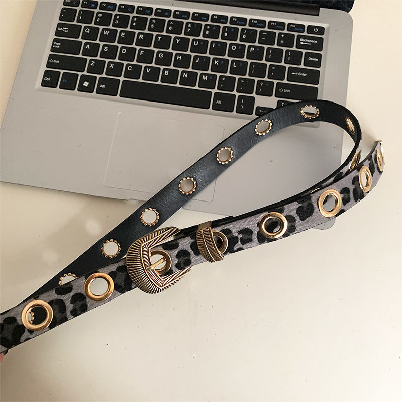美式千禧辣妹风豹纹细腰带女免打孔收腰配牛仔裤带潮酷百搭皮带潮