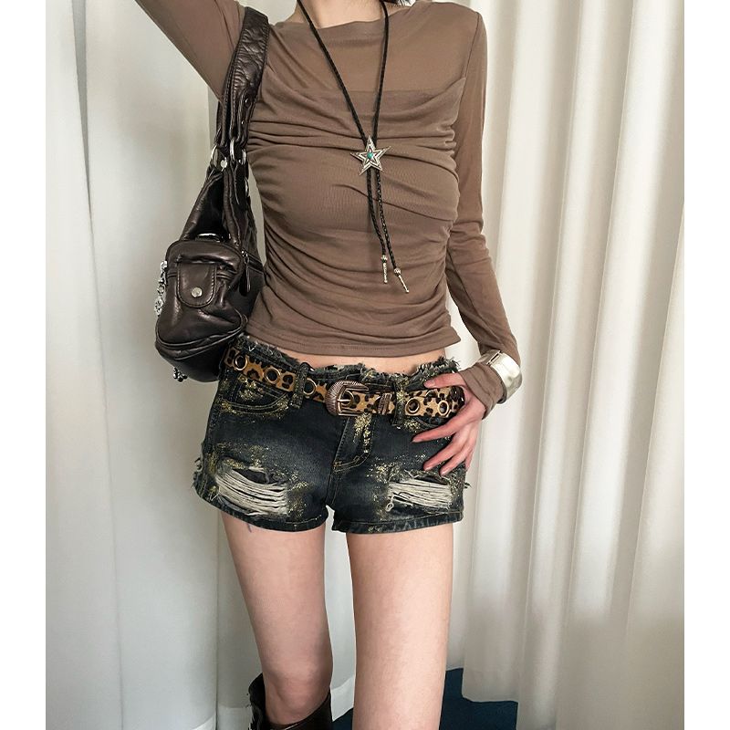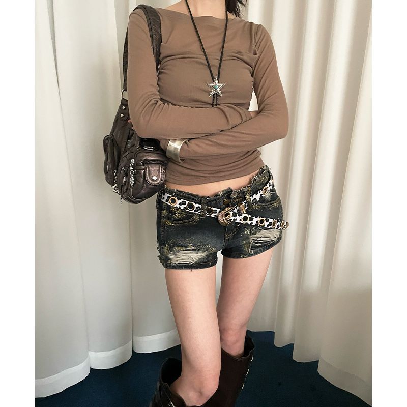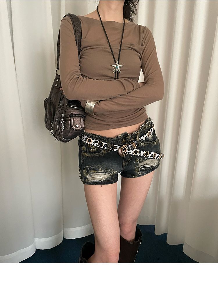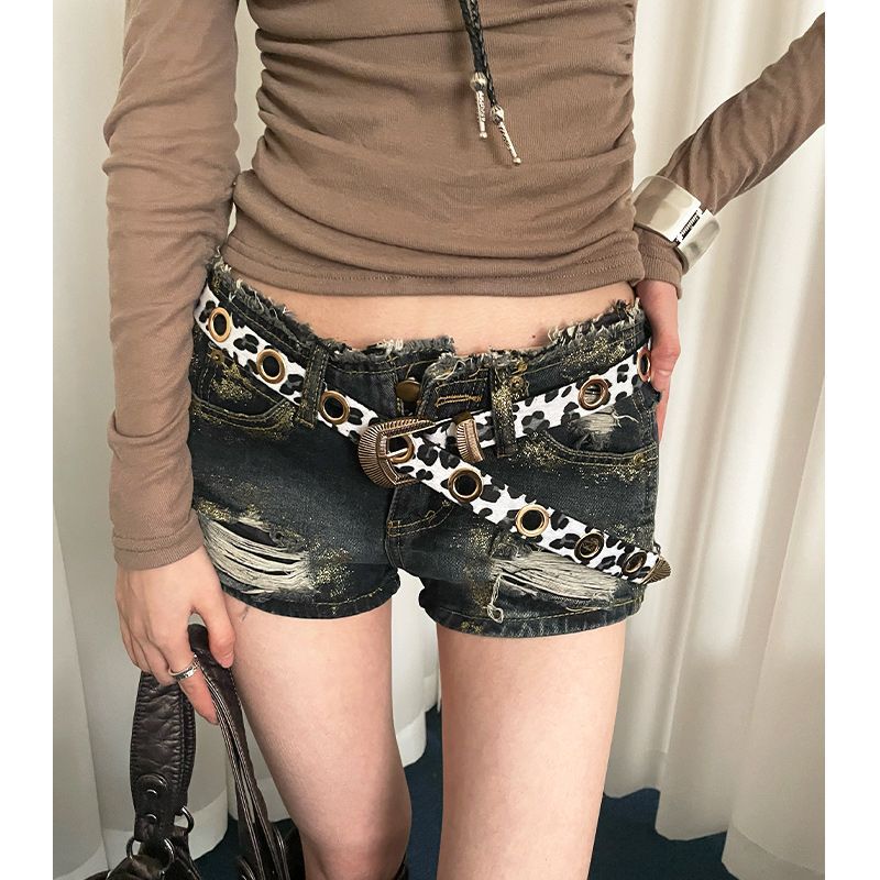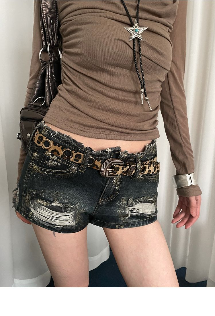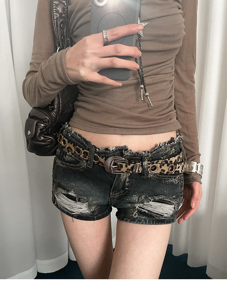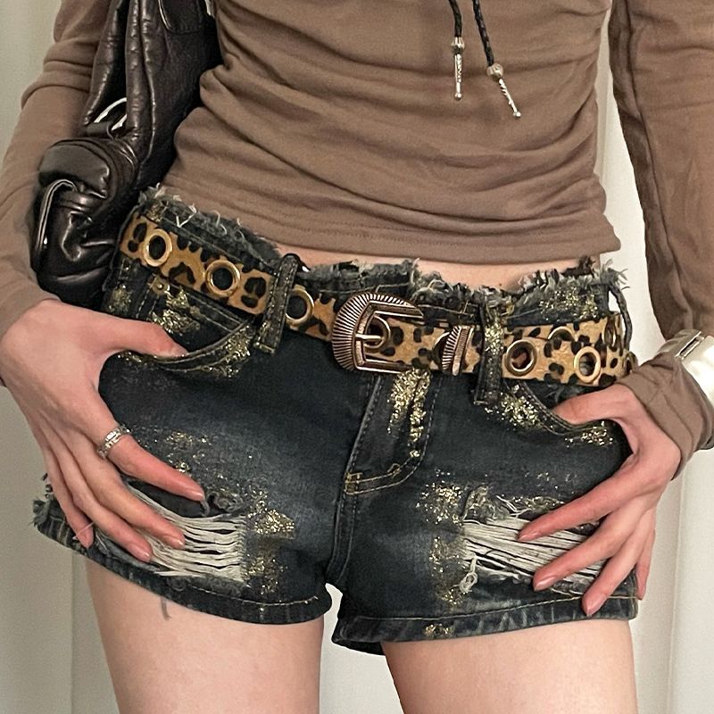美式千禧辣妹风豹纹细腰带女免打孔收腰配牛仔裤带潮酷百搭皮带潮