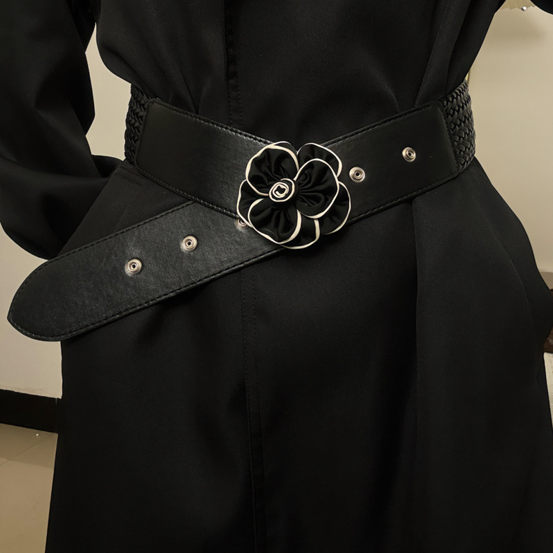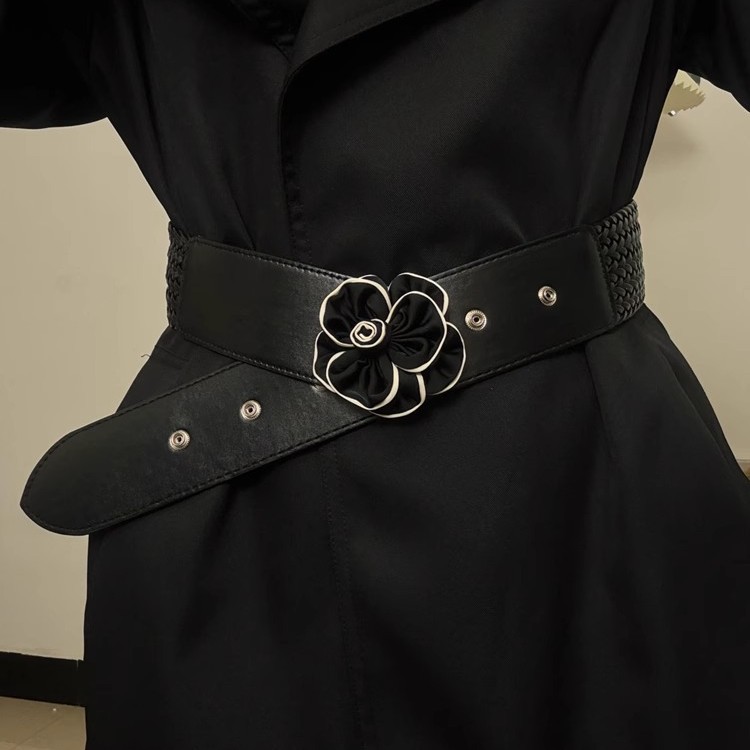 花朵腰带女设计感小众装饰皮带配裙子百搭大衣收腰高级感宽腰封潮
