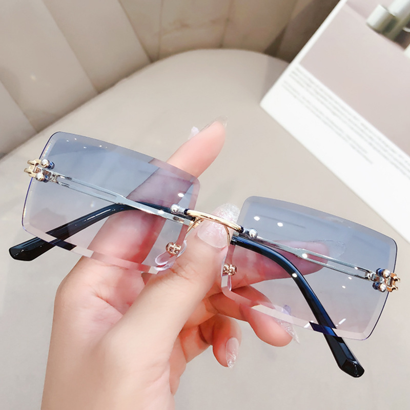 时尚外贸无框切边太阳镜女士方形渐变色墨镜跨境潮流街拍遮阳眼镜