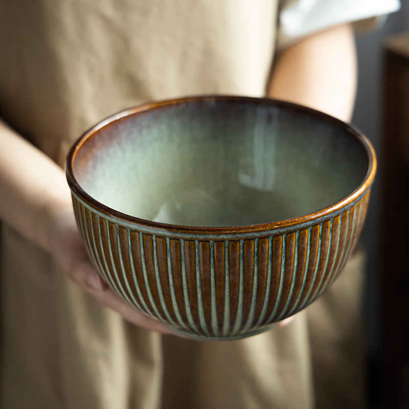 大容量竖纹浮雕陶瓷碗早餐碗面碗水果沙拉碗家用大碗餐具菜碗汤碗