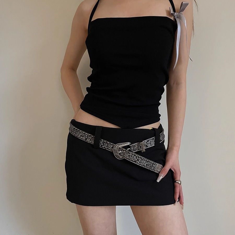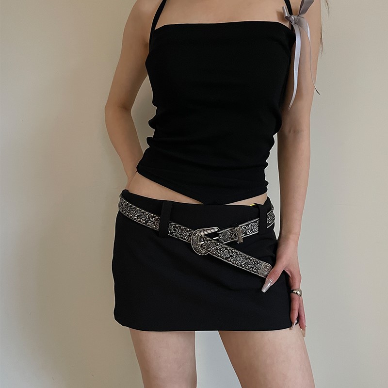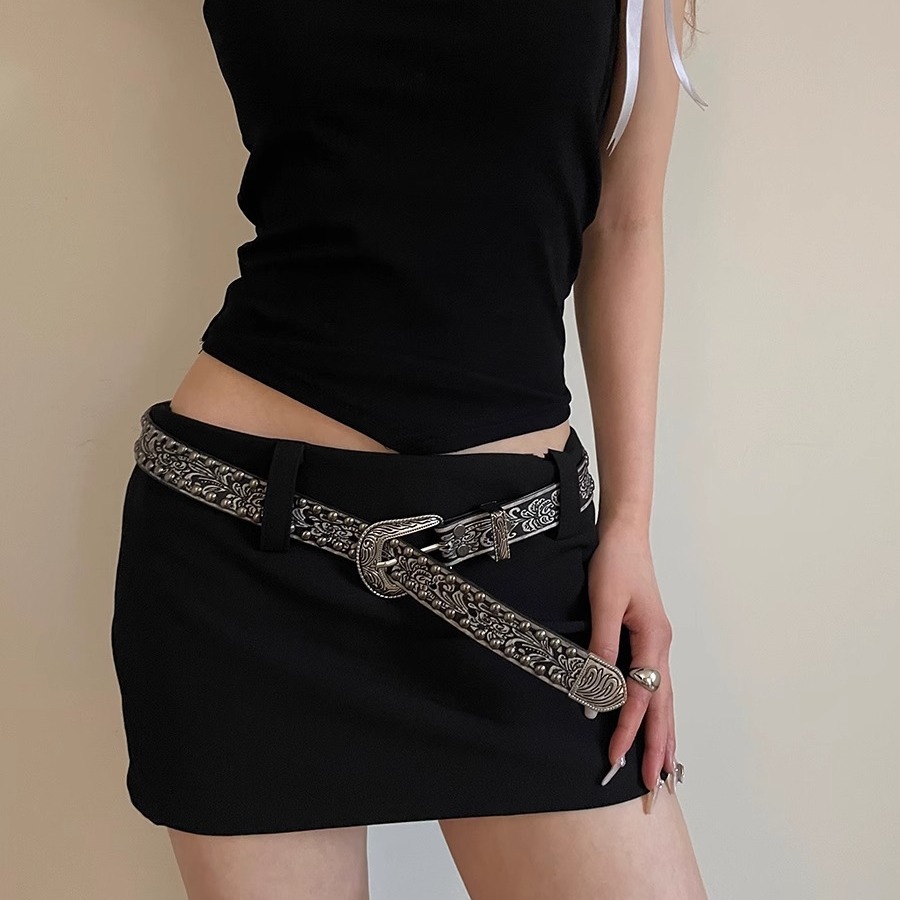 新款复古做旧铆钉压花皮带女款小众个性百搭辣妹腰带ins裤带
