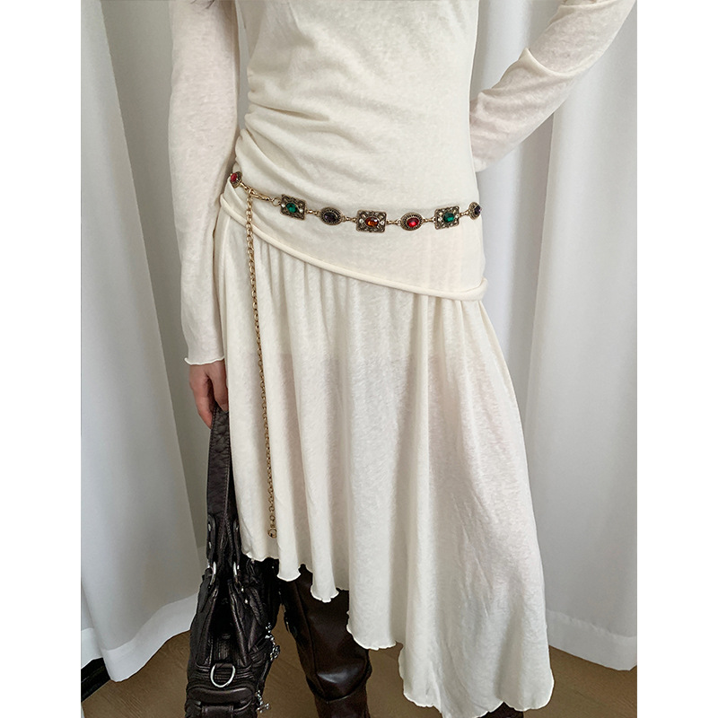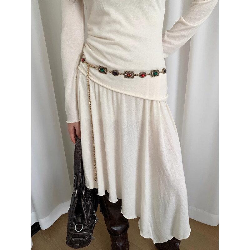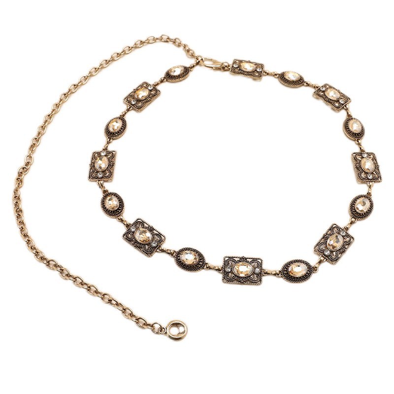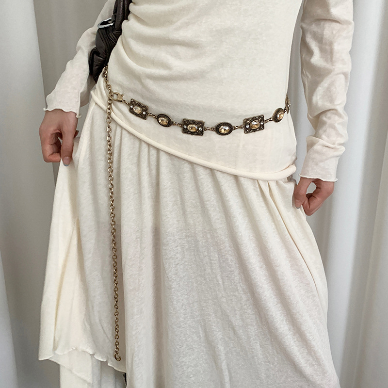 复古轻奢民族风腰链女水钻镶嵌设计感金色腰带宫廷风裙子链条配饰