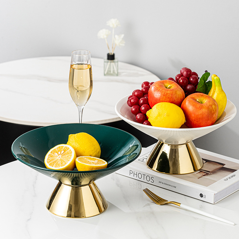 陶瓷高脚果盘现代客厅茶几家用高档轻奢点心盘水果盘糖果零食盘