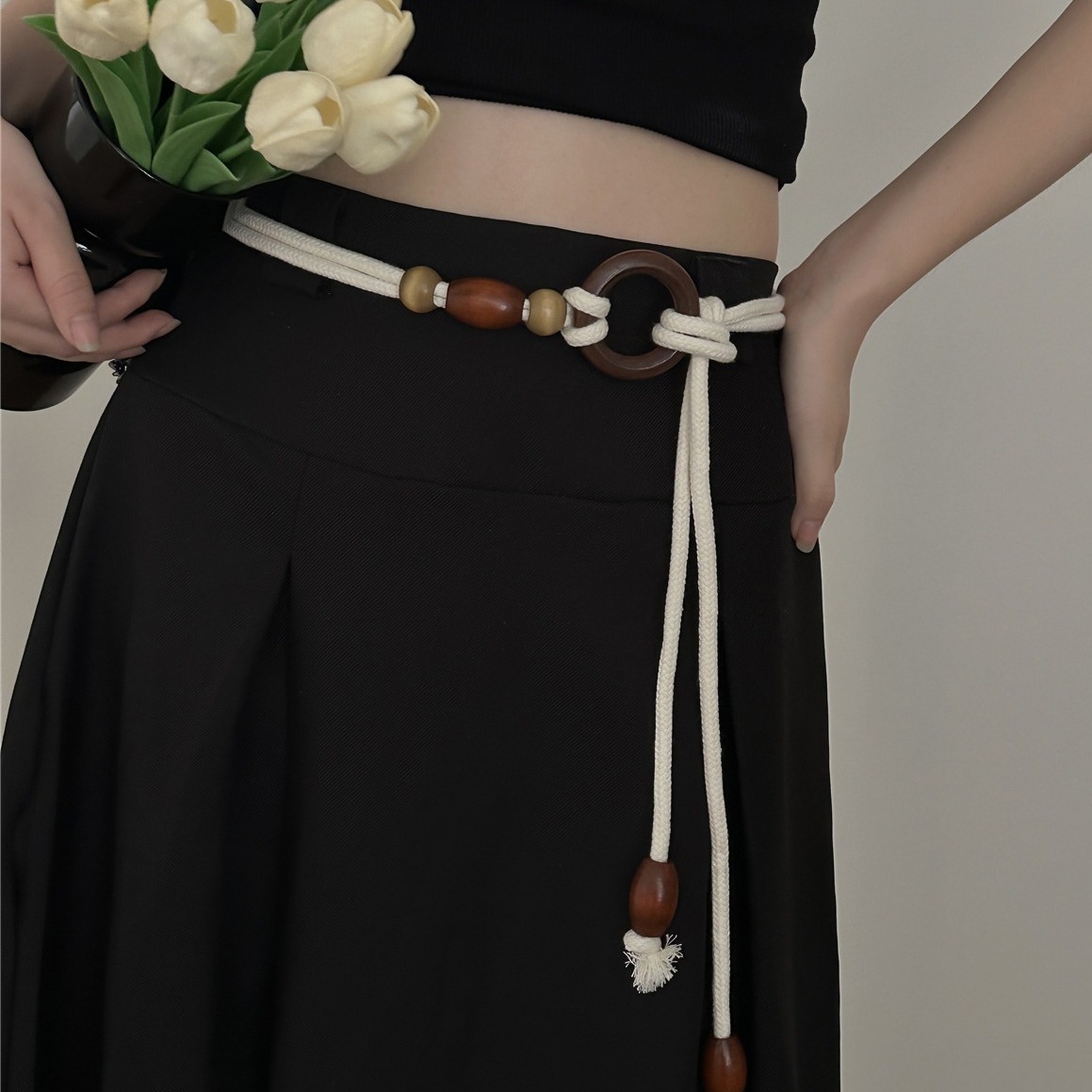 波西米亚风白色腰绳腰带配饰女夏季民族风装饰配连衣裙子复古腰链