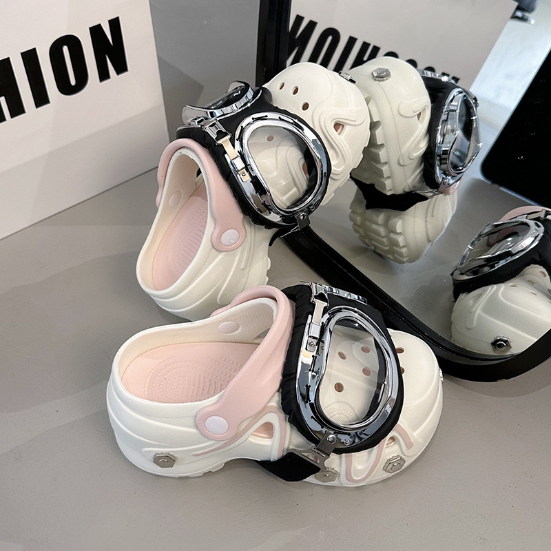 时尚眼镜厚底洞洞鞋女2025夏季新款百搭凉拖鞋潮