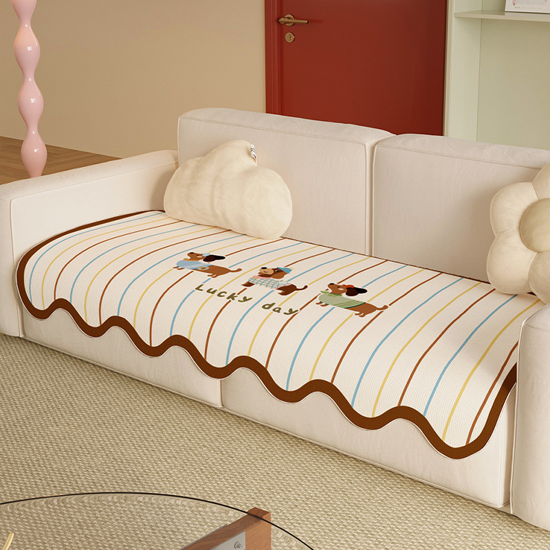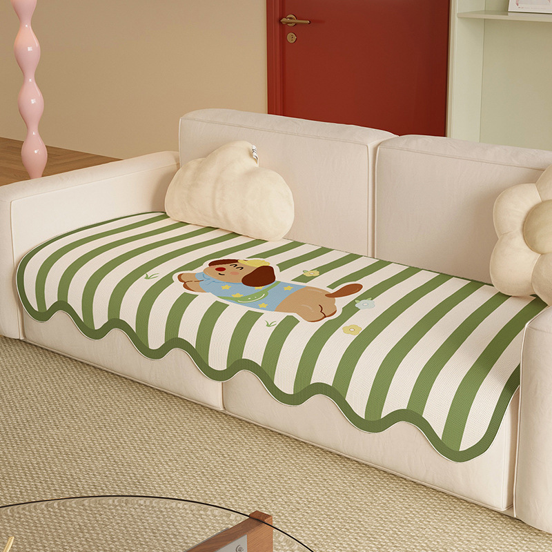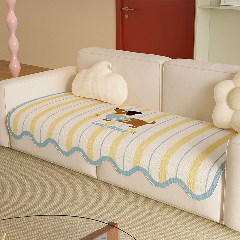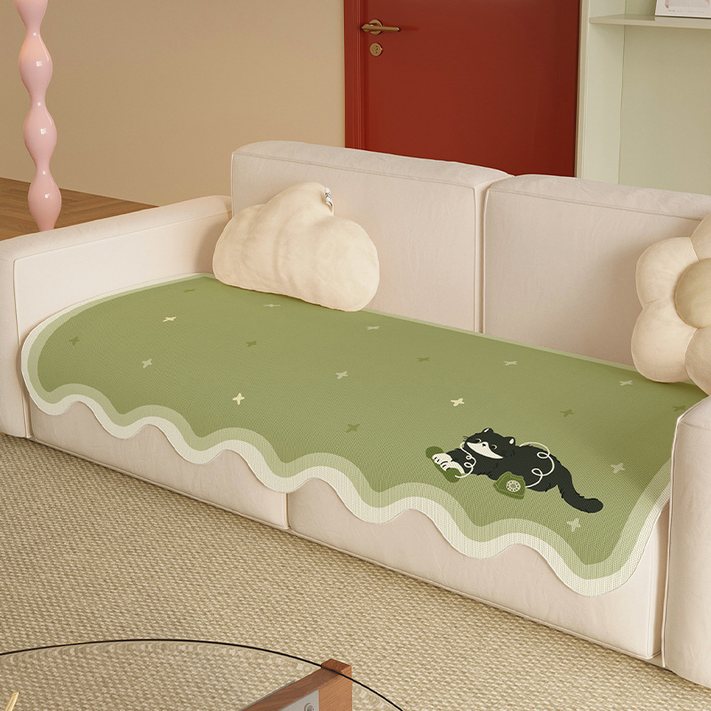 卡通冰丝沙发垫凉感透气沙发凉席垫家用耐脏易打理异形防滑垫子