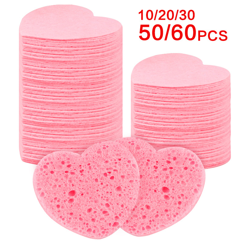 清洁木浆棉洗脸扑卸妆一次性洗脸海绵多色心形压缩洗脸扑