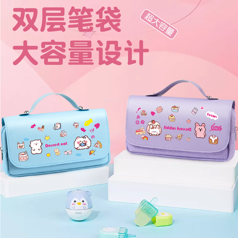 新款创意双层大容量手提笔袋简约可爱女孩小学生笔袋文具袋文具盒