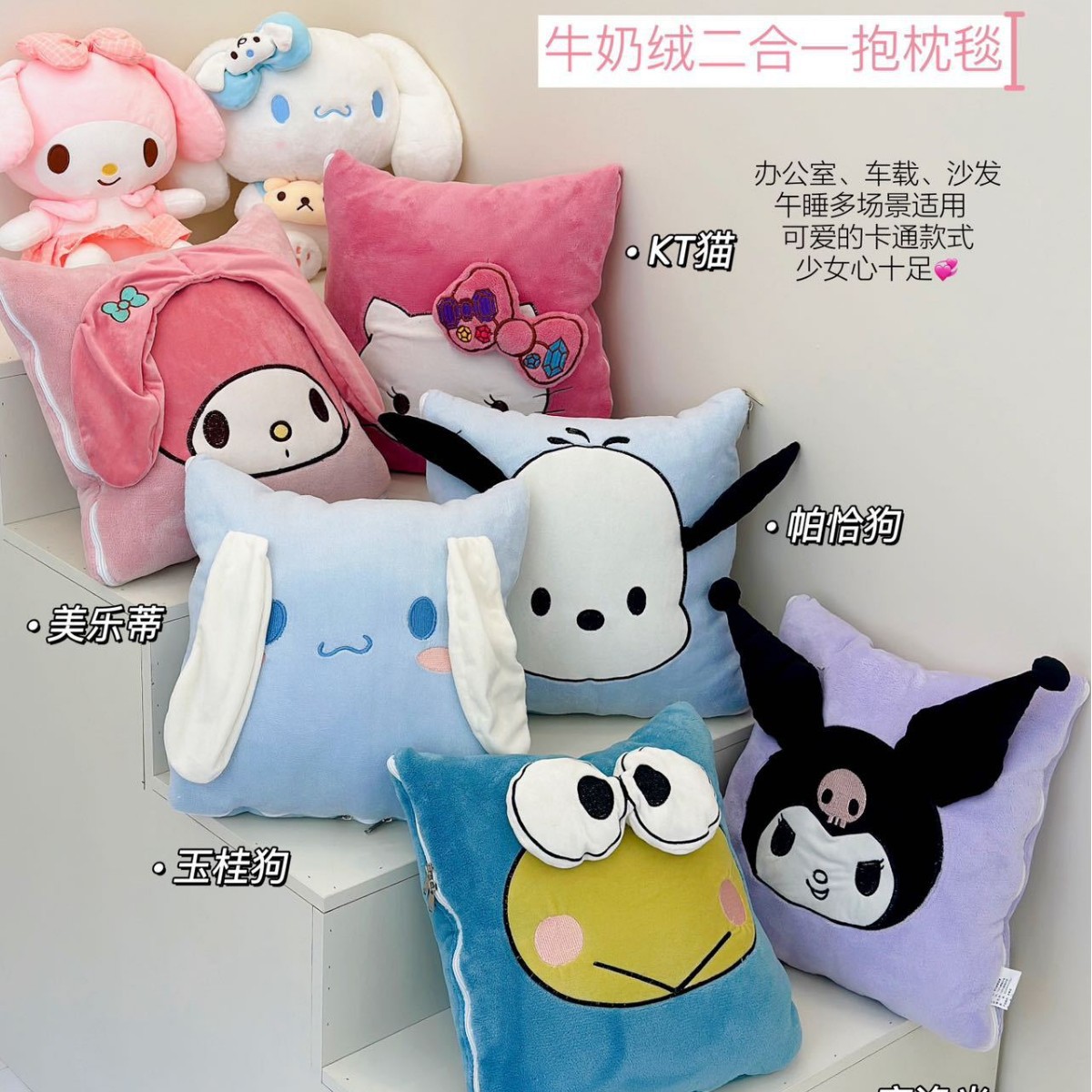 跨境三丽鸥卡通毛毯抱枕被多功能车载抱枕沙发办公椅靠垫午休被子