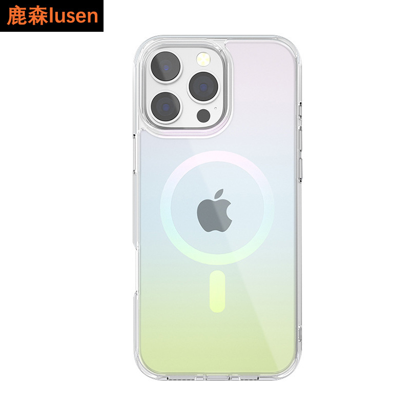 适用iphone16promax渐变磁吸彩虹手机壳苹果15pro防摔高透保护套