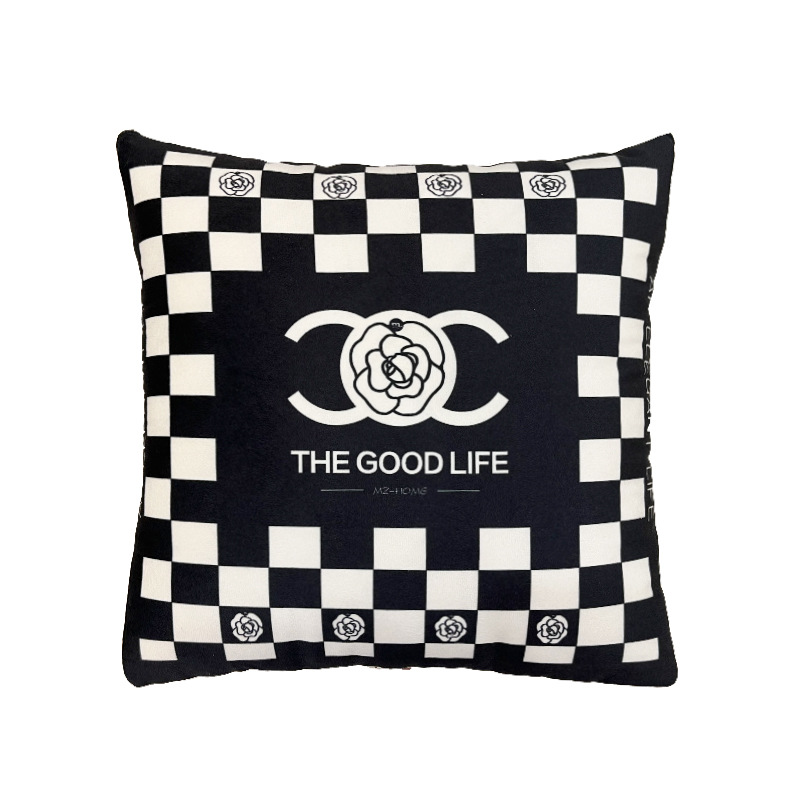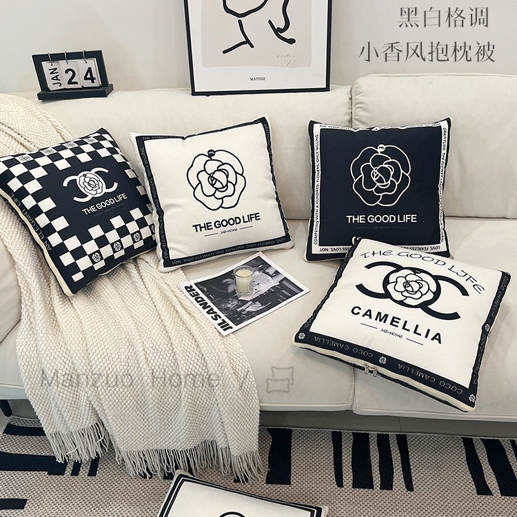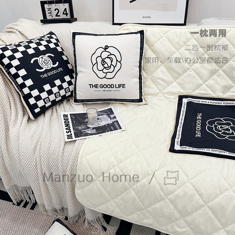 法式风山茶花抱枕被子二合一两用盖毯沙发抱枕毯车载办公室冬加厚
