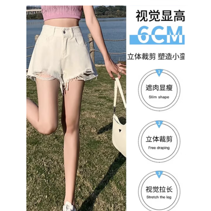 牛仔短裤女夏季2025年新款休闲辣妹破洞裤宽松高腰显瘦小个子热裤