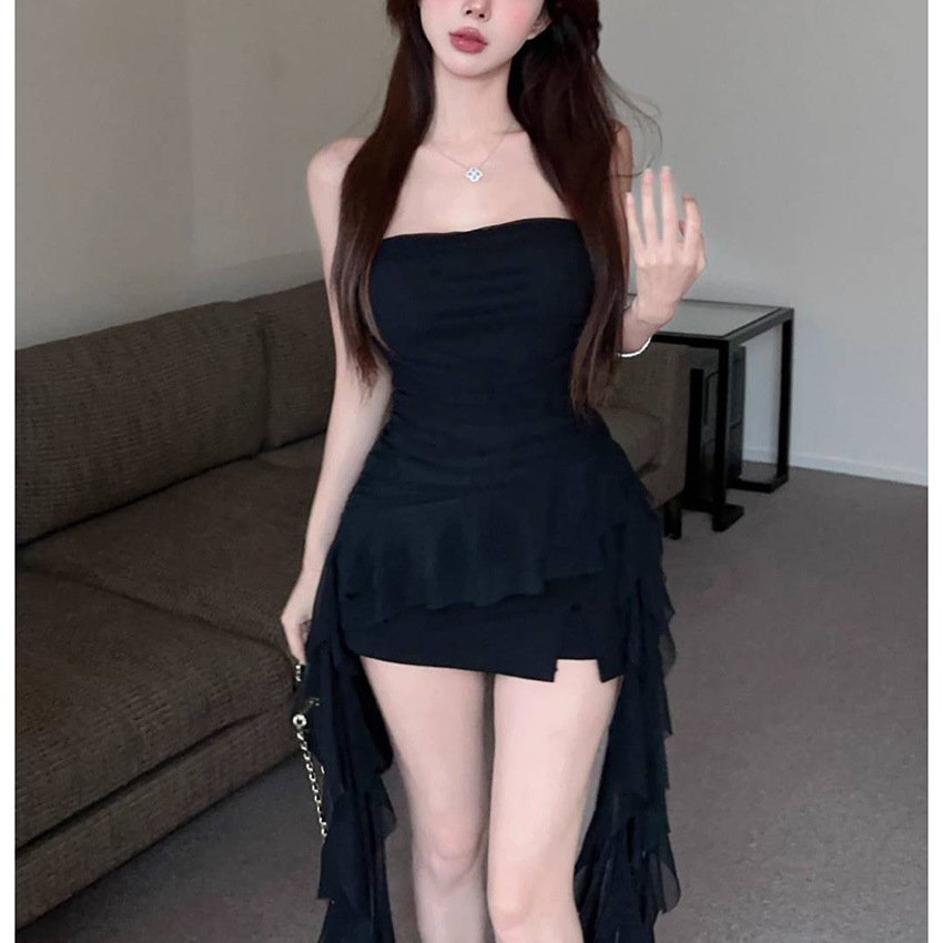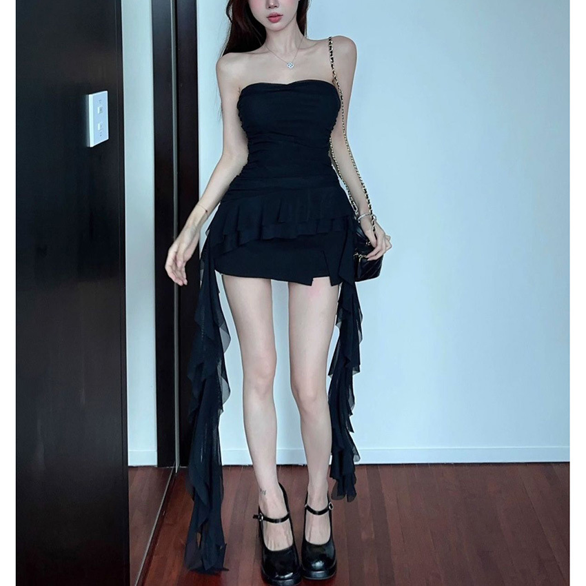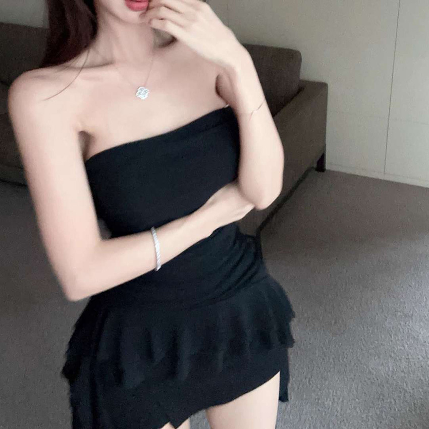 法式飘带抹胸背心女性感辣妹无袖外穿荷叶边短款上衣