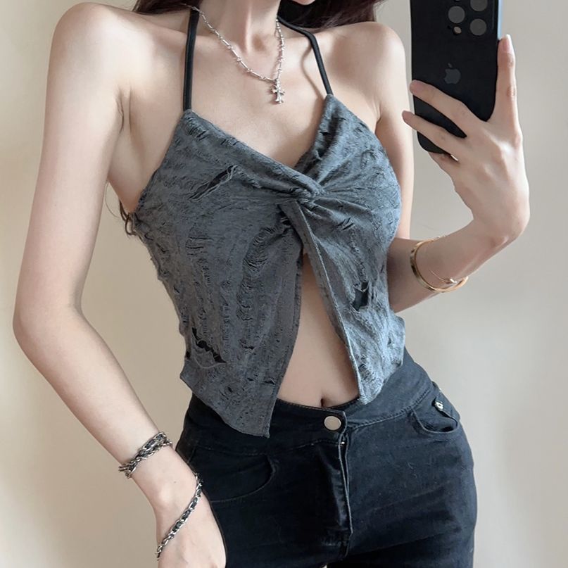 【跨境批发】潮流吊带上衣女短款夏季外穿露脐扭结抹胸甜辣背心女