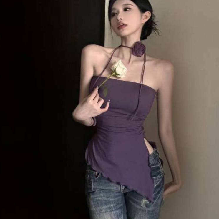 泰国紫色抹胸吊带背心女多巴胺裹胸外穿甜辣妹高级感修身内搭上衣