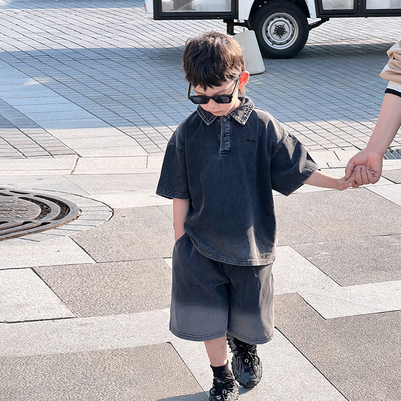 童装儿童夏装男童套装夏季小男孩新款休闲宽松透气黑色两件套