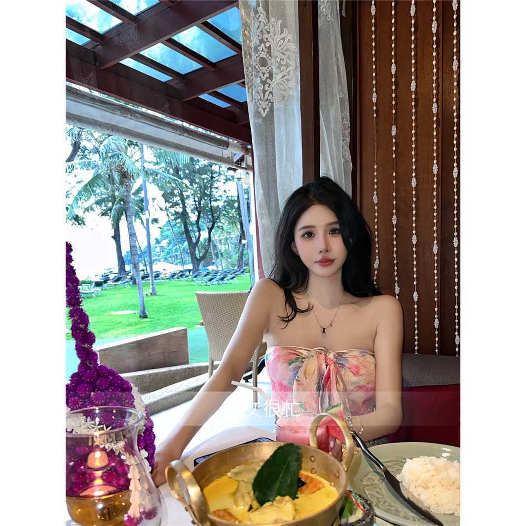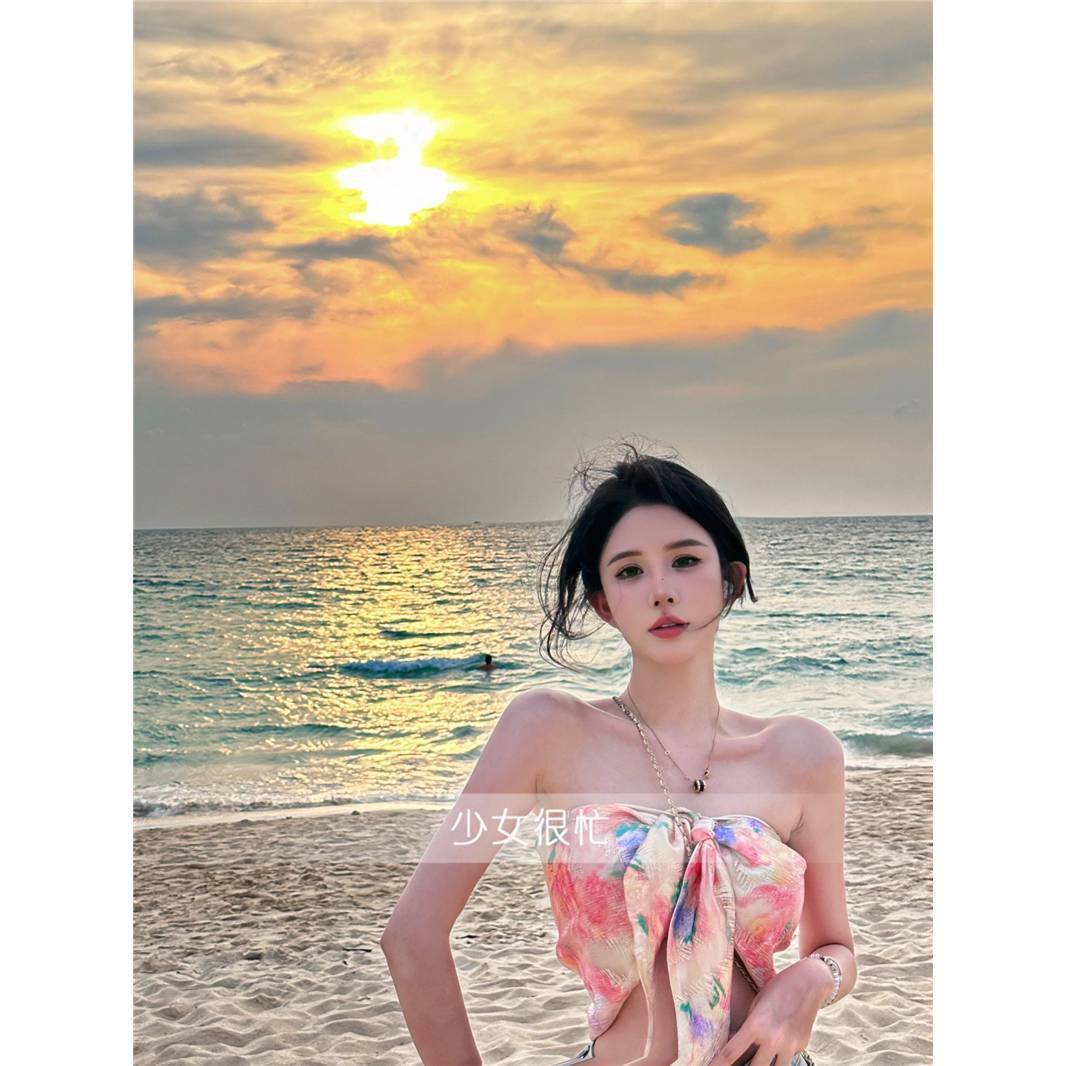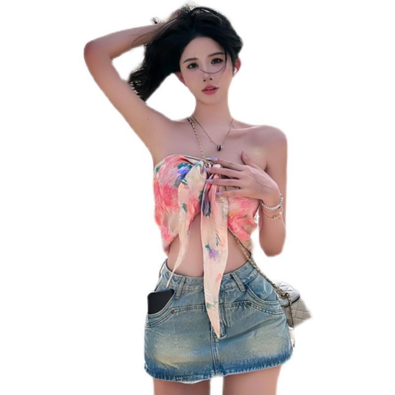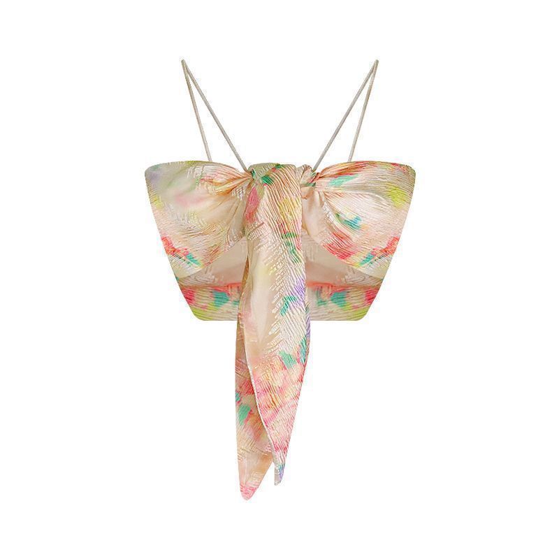 【月销10万】渲染蝴蝶结抹胸碎花独特小吊带泰国小众露脐短款上衣