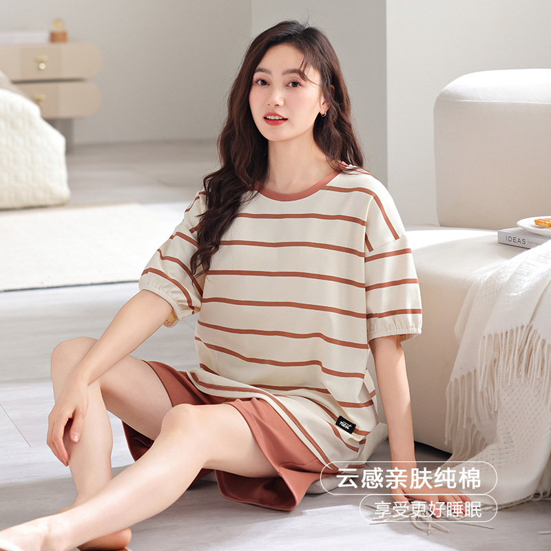 新款睡衣女士夏季纯棉短袖短裤简约休闲套头全棉家居服夏天