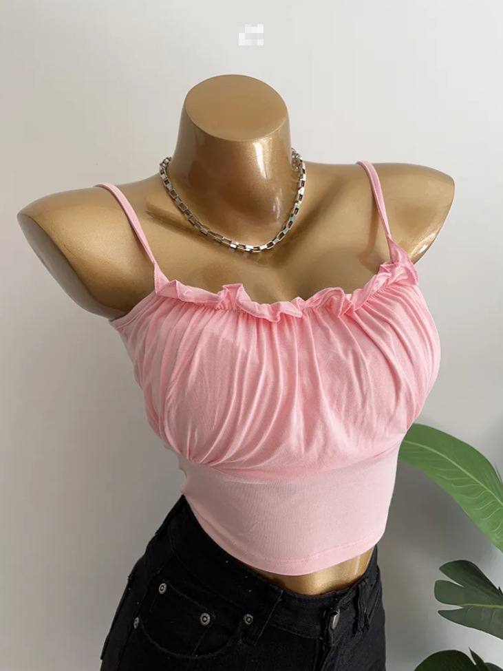 【月销10万】ins气质女人味~褶皱带垫吊带背心打底上衣女内搭