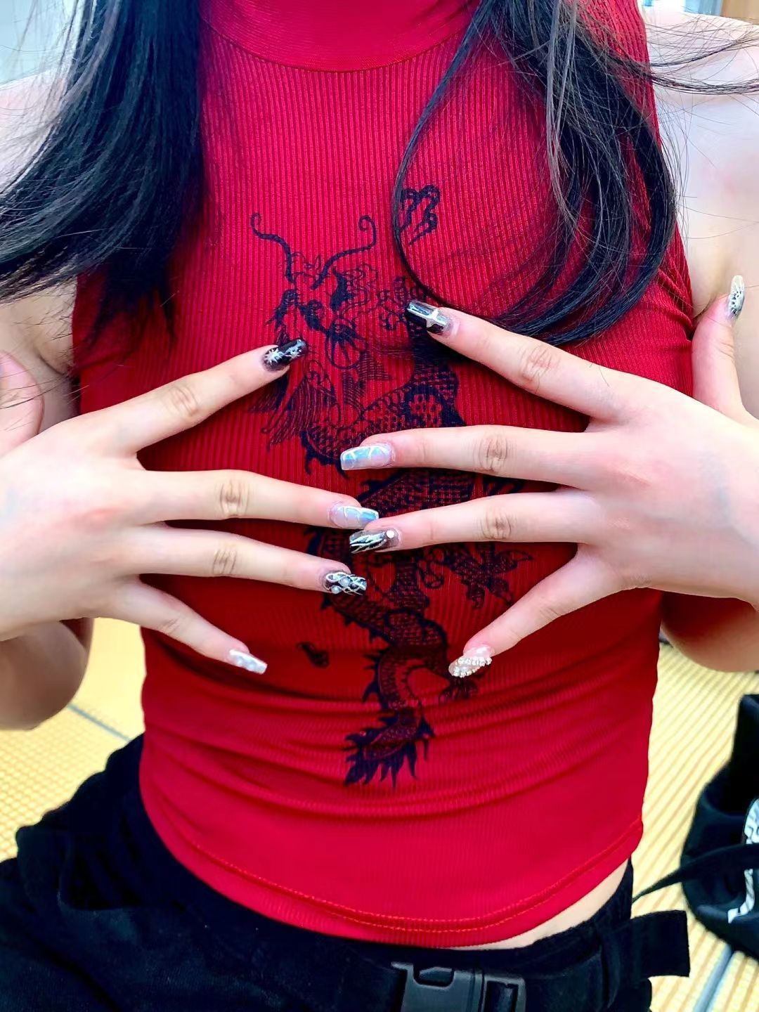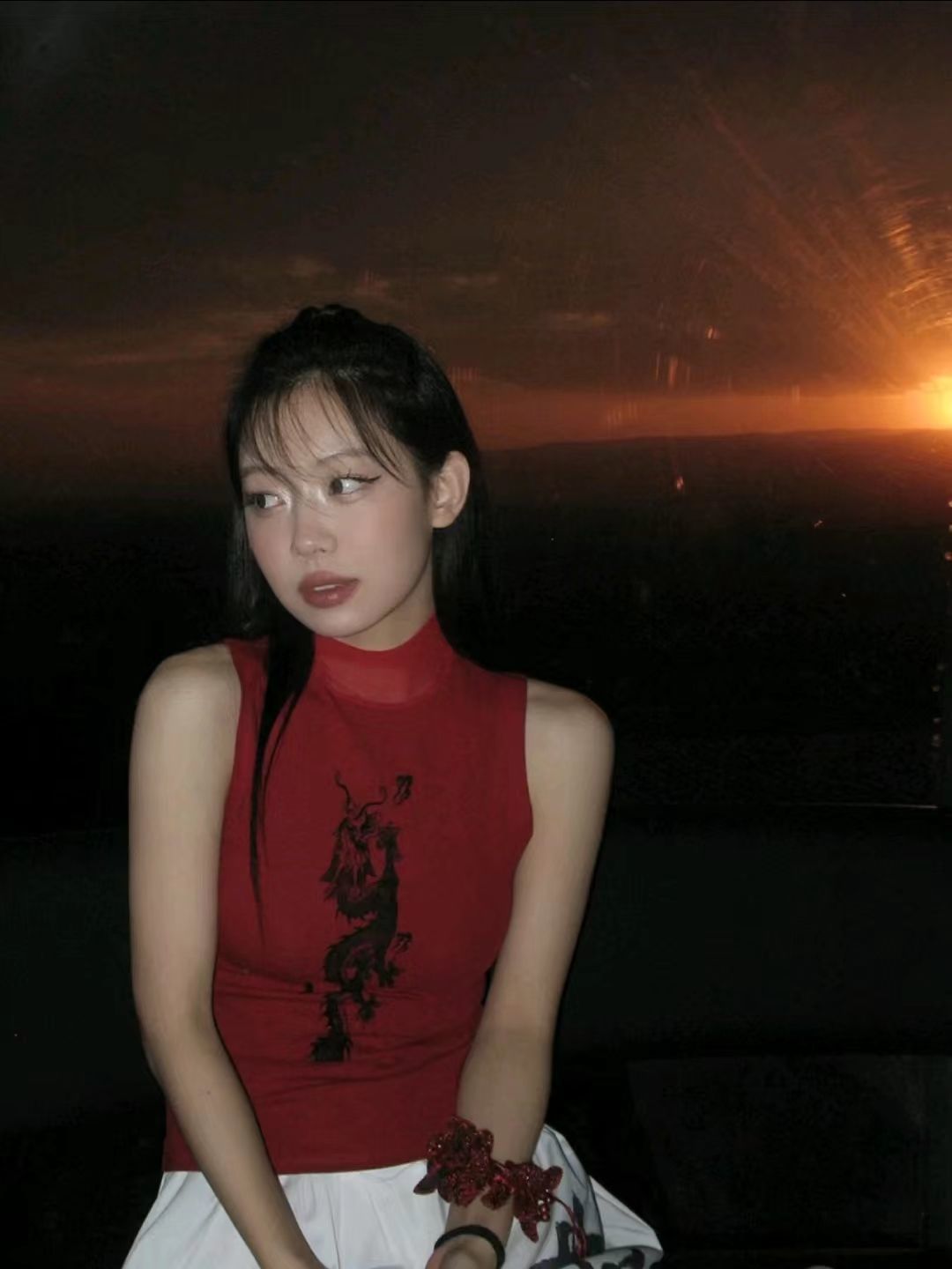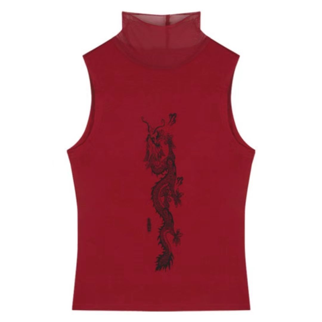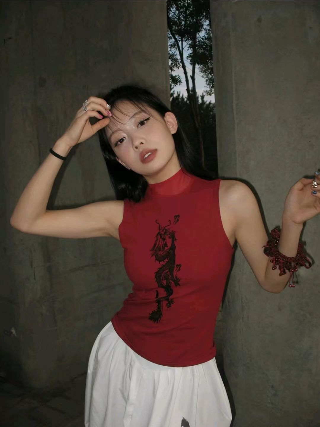 亚文化朋克千禧风高领上衣T恤女高街美式复古纯欲ins风无袖背心潮