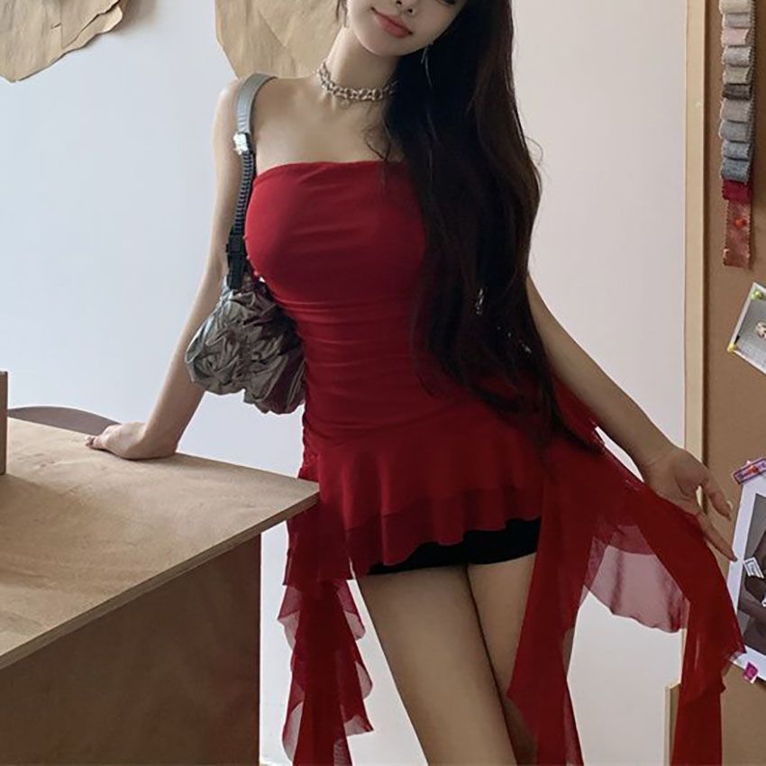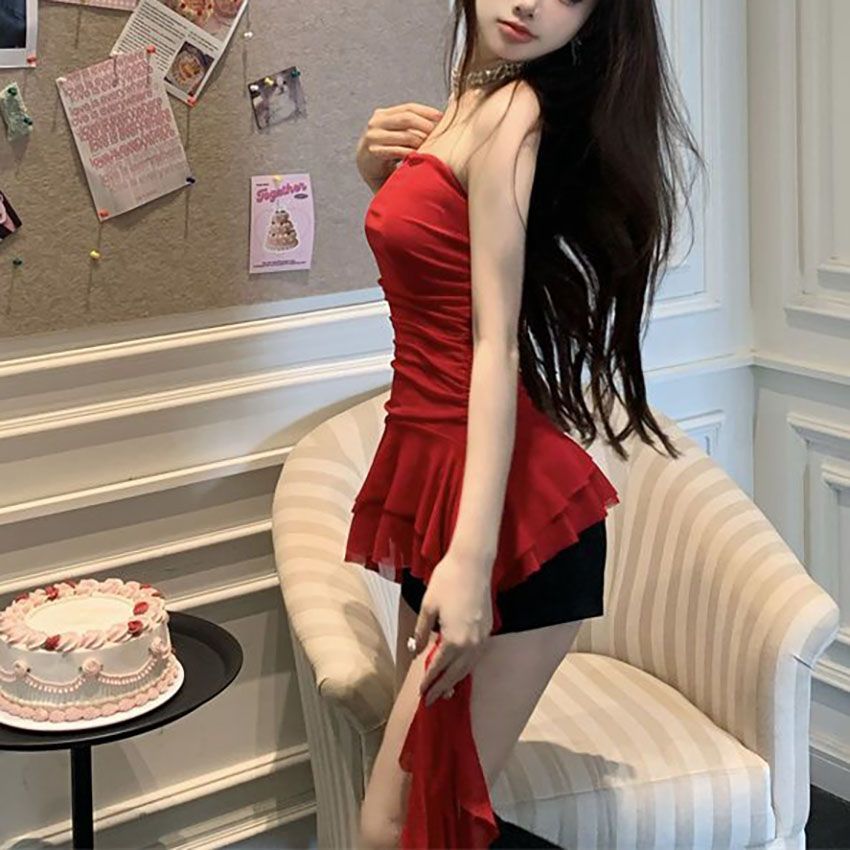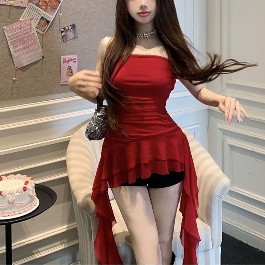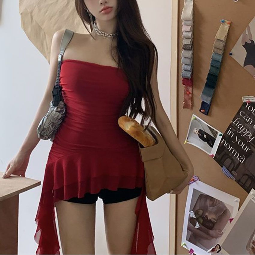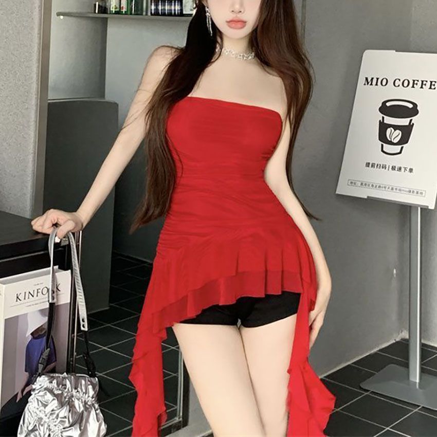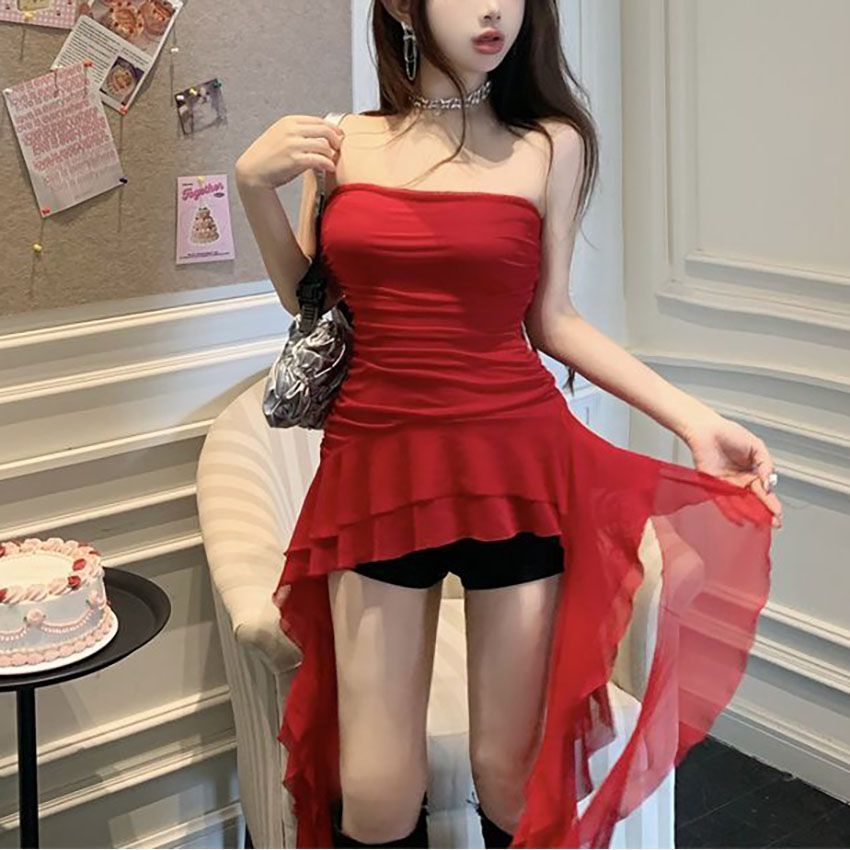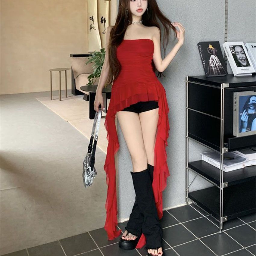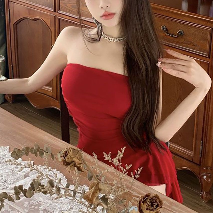 红色飘带抹胸背心女2025夏季裹胸内搭纯欲风上衣外穿