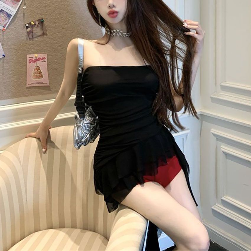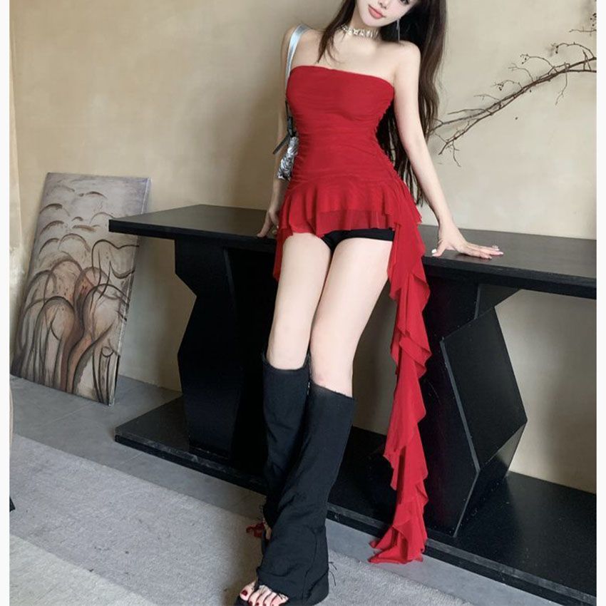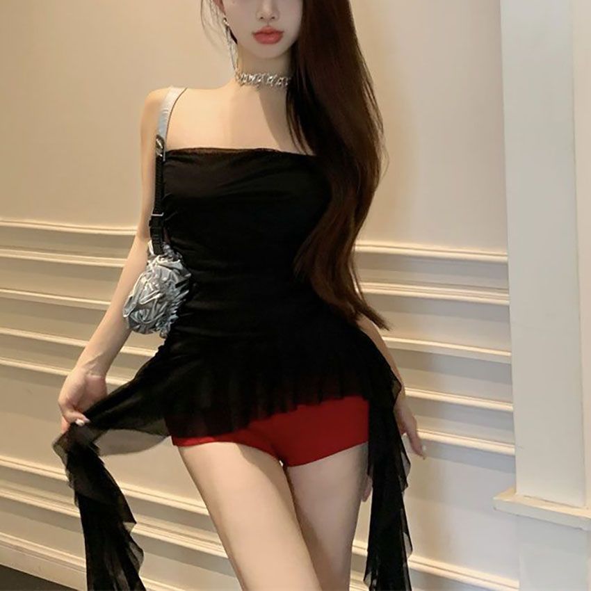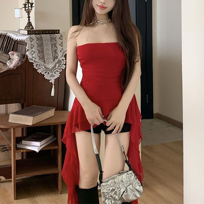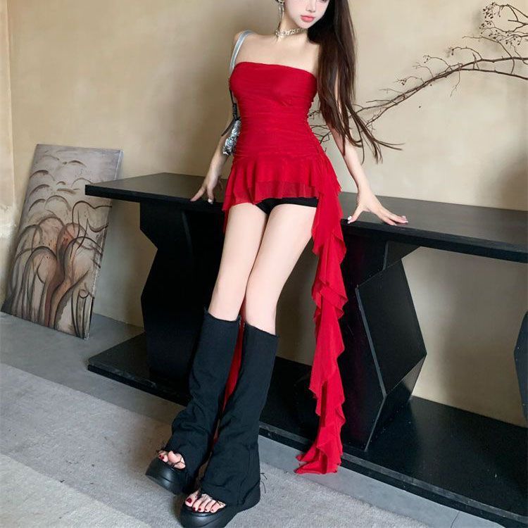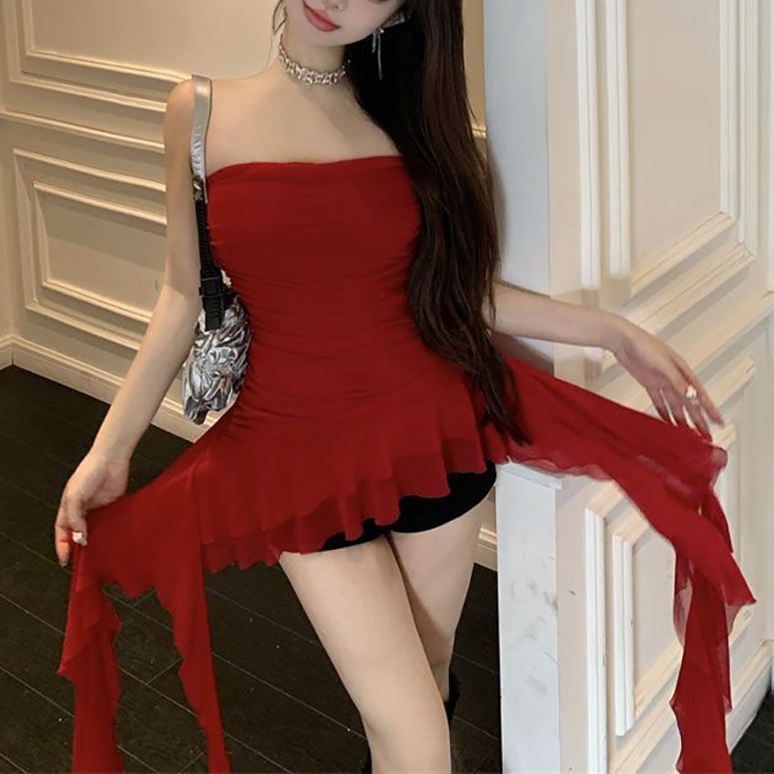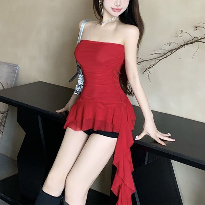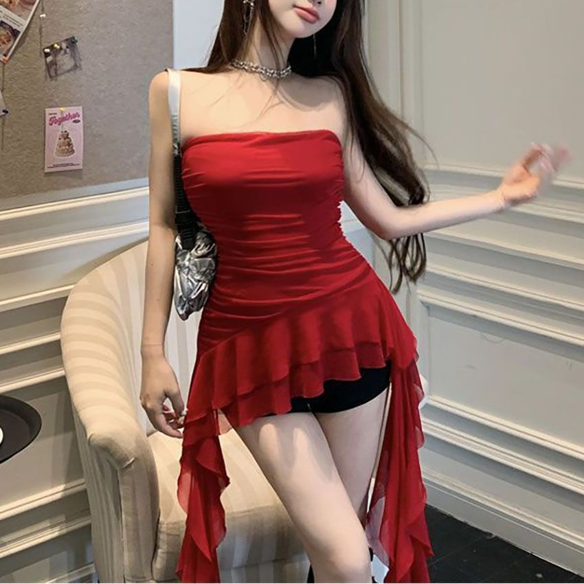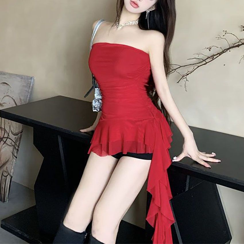 红色飘带抹胸背心女2025夏季裹胸内搭纯欲风上衣外穿