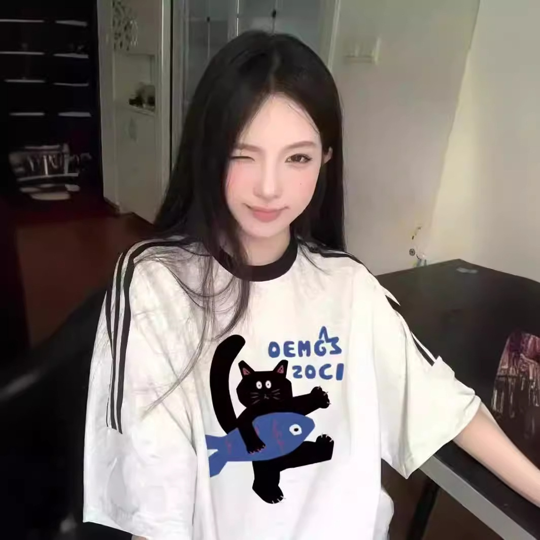 夏季纯棉短袖t恤女新款爆款设计感小众美式宽松半袖上衣大码
