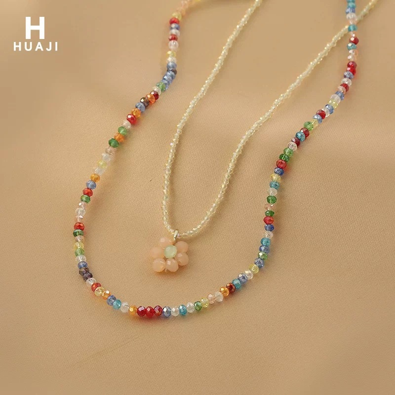 花迹彩色花朵项链女温柔风小清新可爱甜美锁骨链小众设计颈链ins