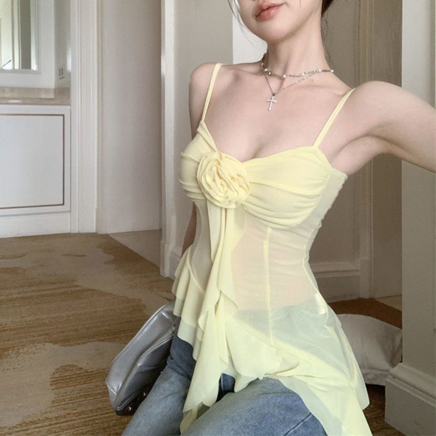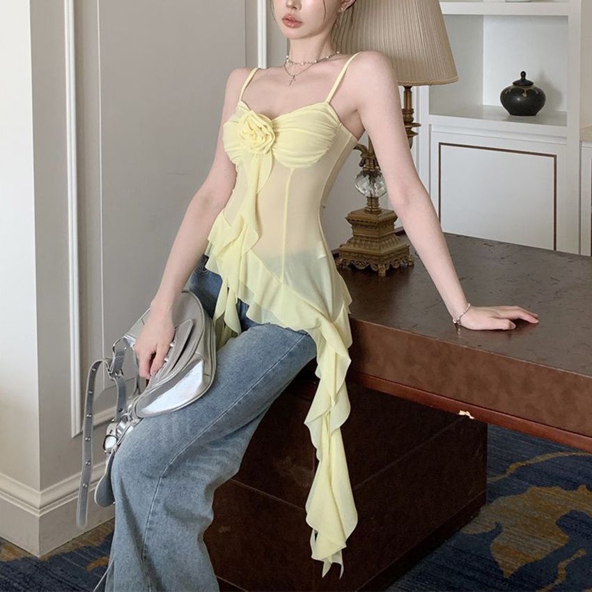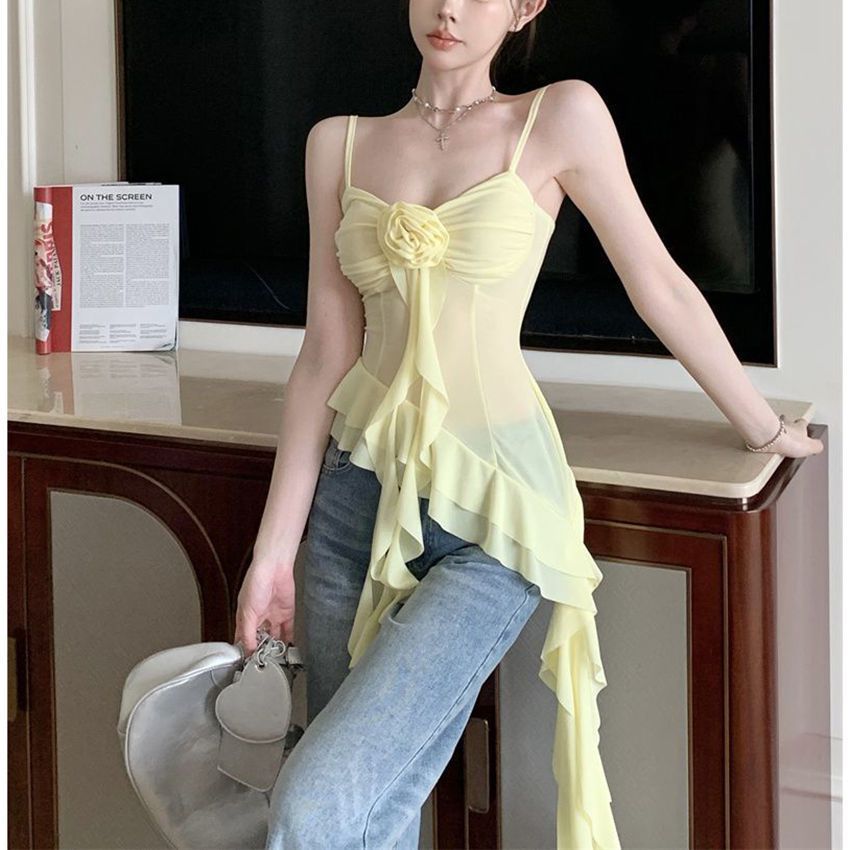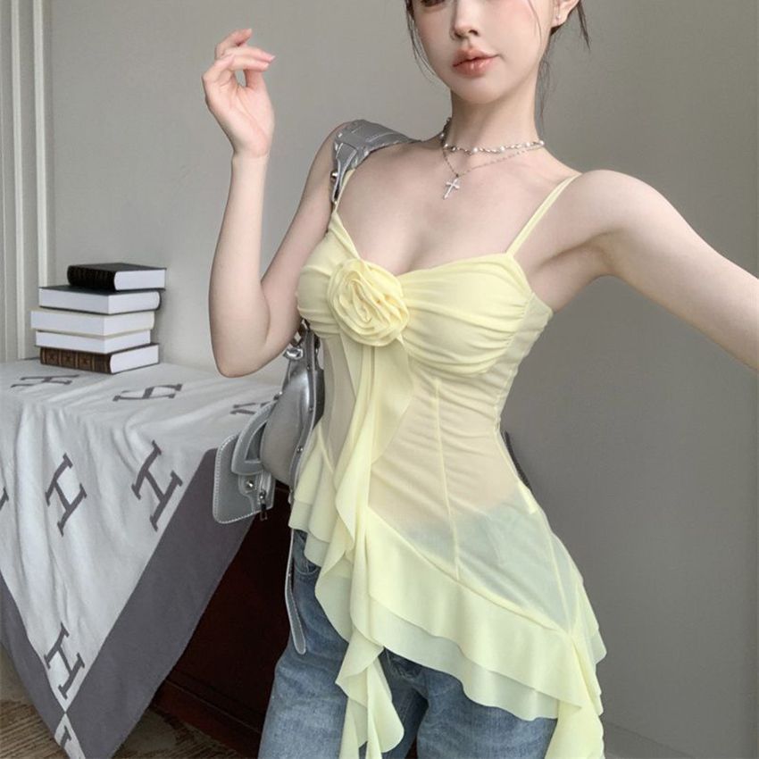 【月销10万】立体花超仙荷叶边拼接吊带氛围感女修身显瘦不规则潮