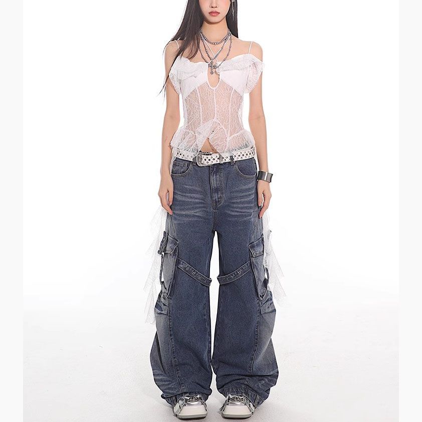 夏日纯欲风小众性感辣妹蕾丝一字肩飘带背心简约上衣