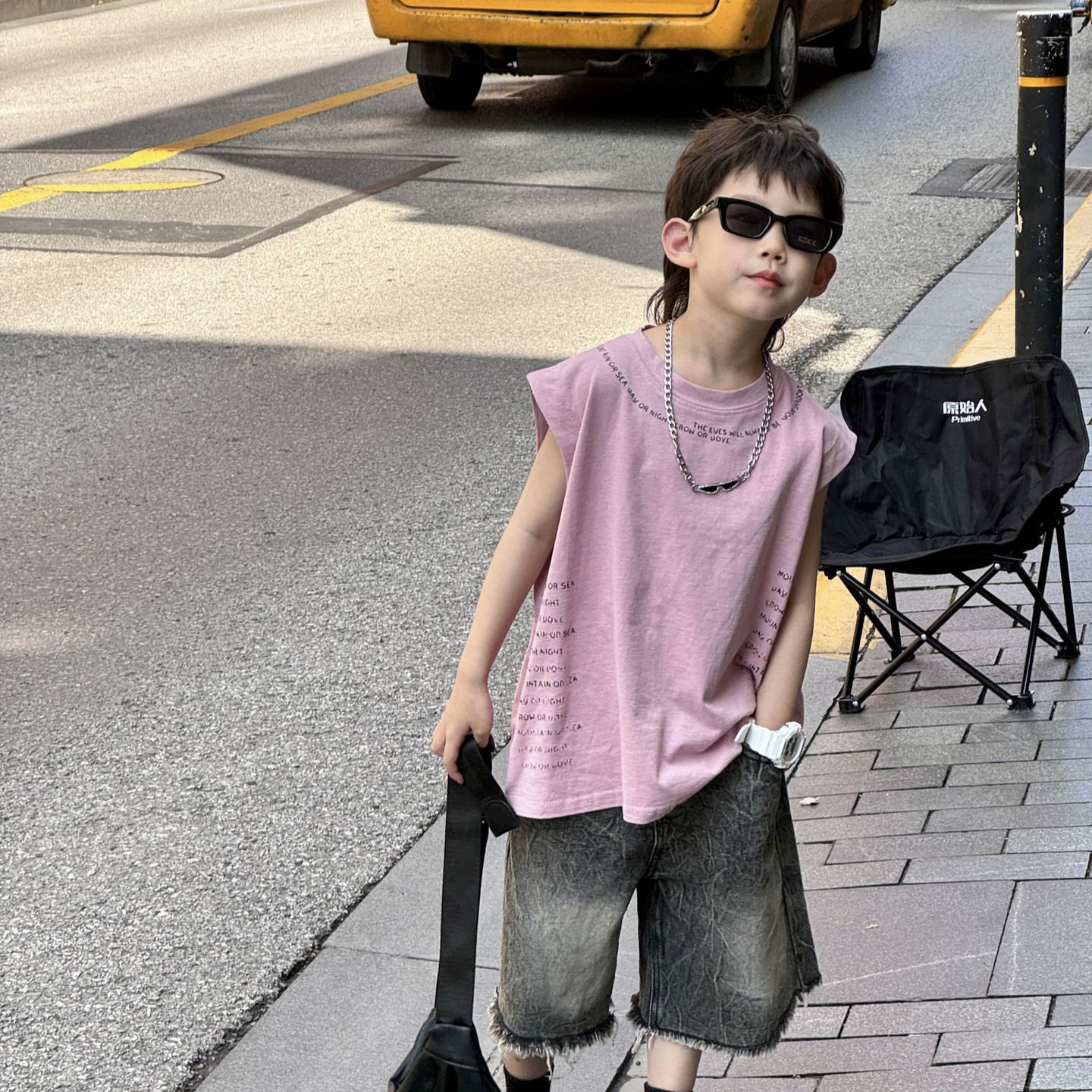 泰如夏季新款韩版男童字母洋气百搭套头纯色无袖T恤儿童上衣