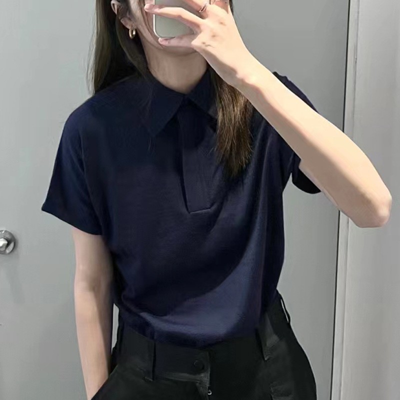 平替时尚宽松慵懒夏季新款女装Polo领T恤女针织衫上衣cos风