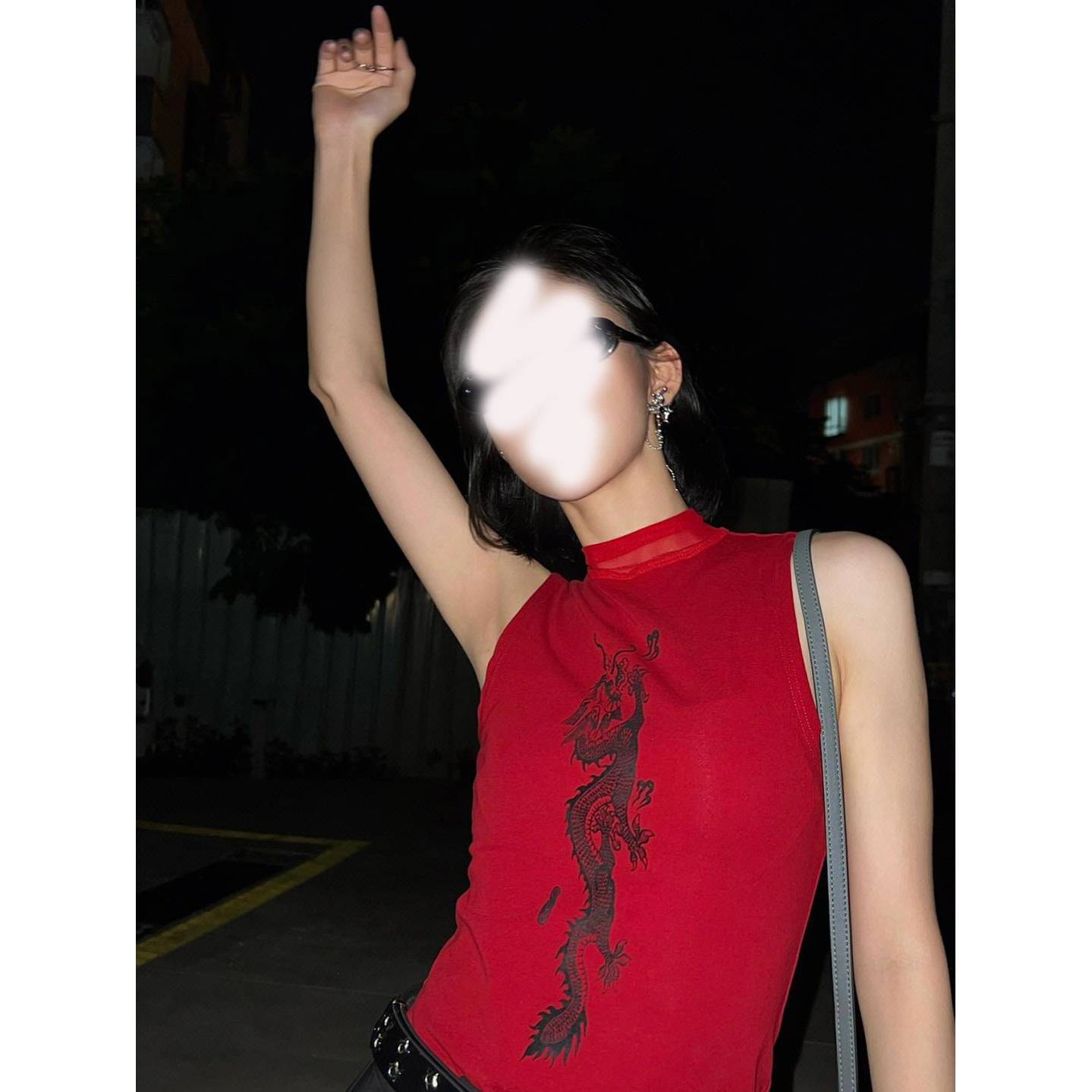 【全网低价】新中式龙纹纯色背心高领无袖修身t恤女夏季内搭新款