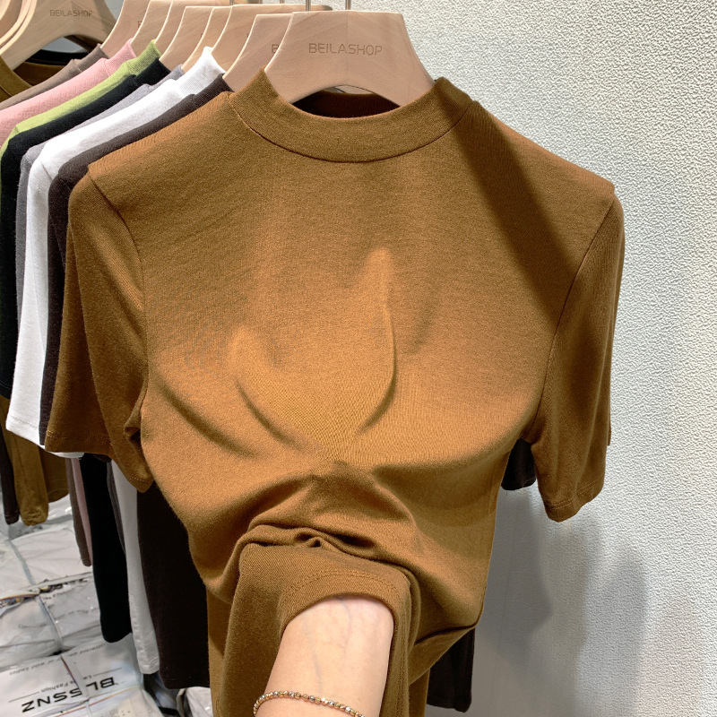 半高领打底衫女内搭春装新款洋气半袖体恤上衣短袖t恤女潮