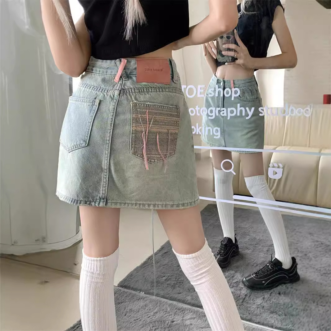 新款高腰小个子短裙牛仔半身裙女胖mm大码显瘦设计感a字包臀裙子