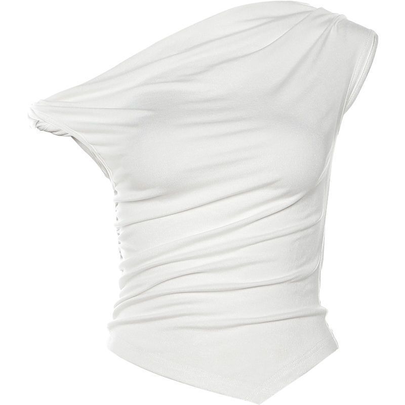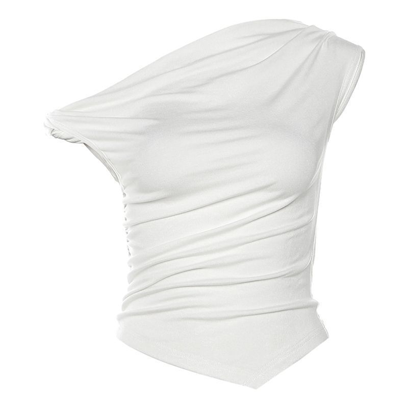 纯欲风chic斜领露肩背心女设计感不规则修身显瘦上衣