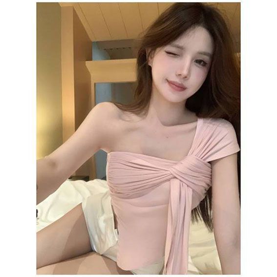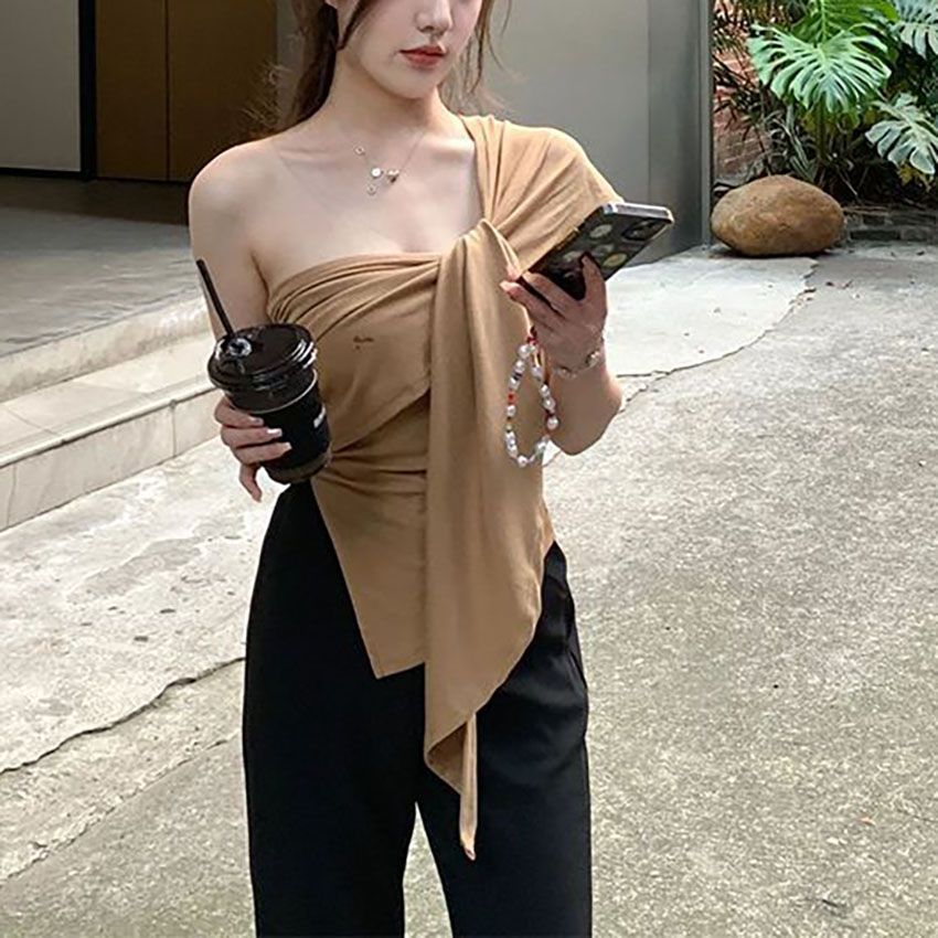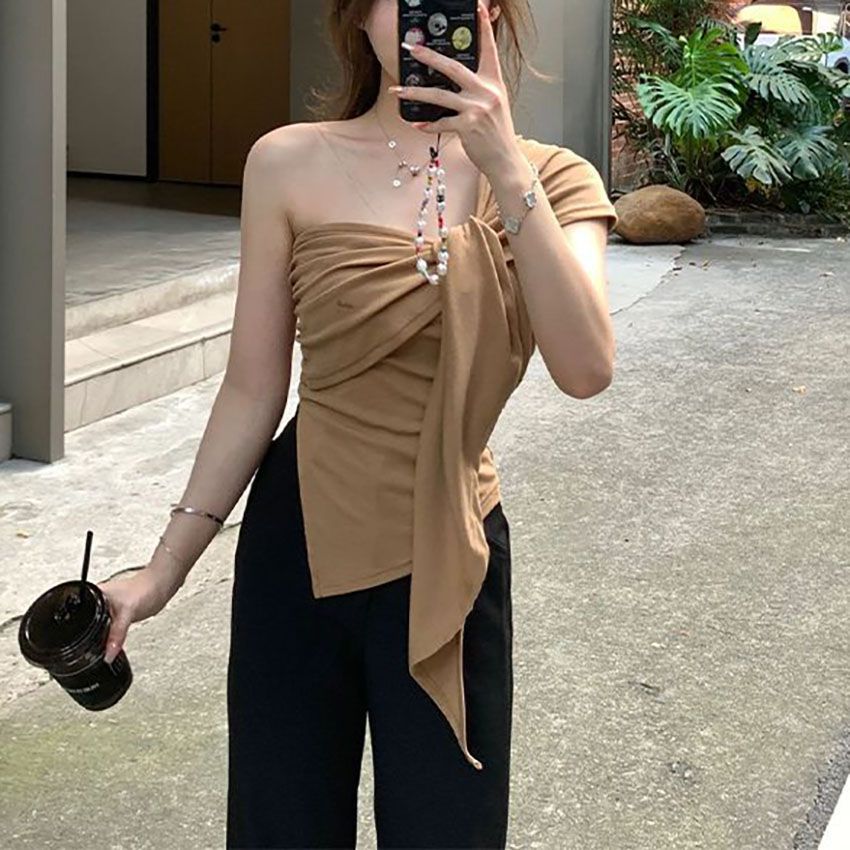 【跨境批发】露肩扭结背心女设计感夏季洋气漂亮小衫不规则上衣女