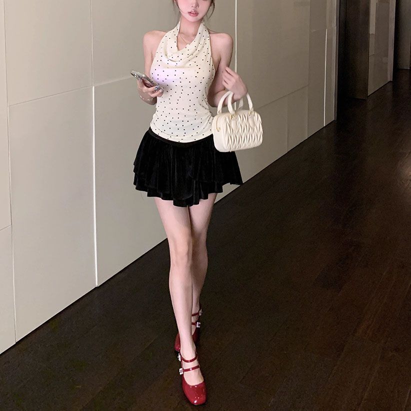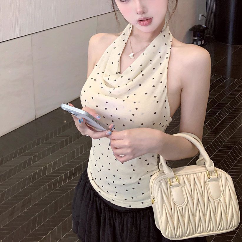 拼接荡领挂脖背心女夏季修身内搭甜辣妹无袖外穿上衣