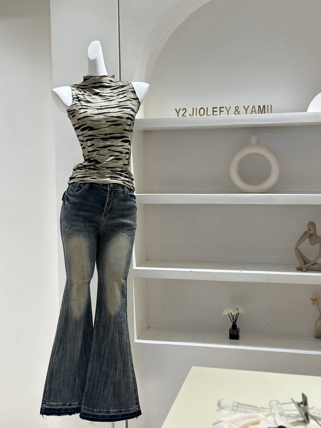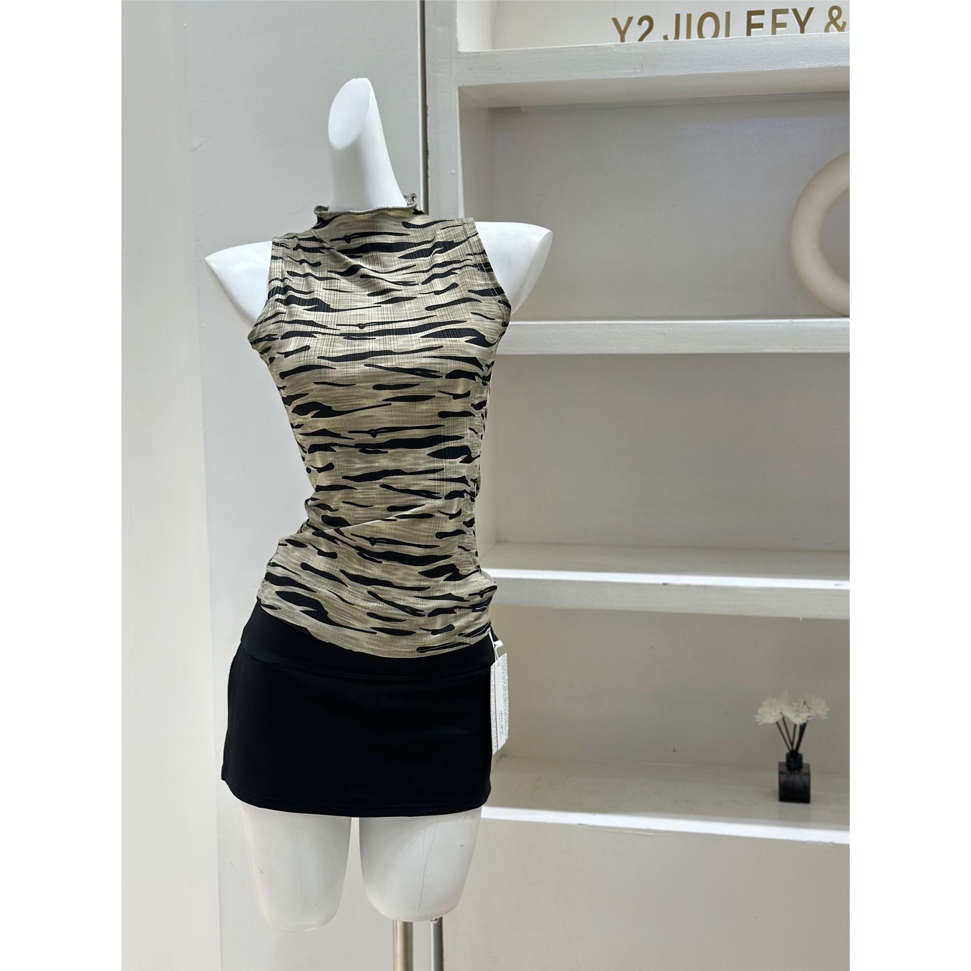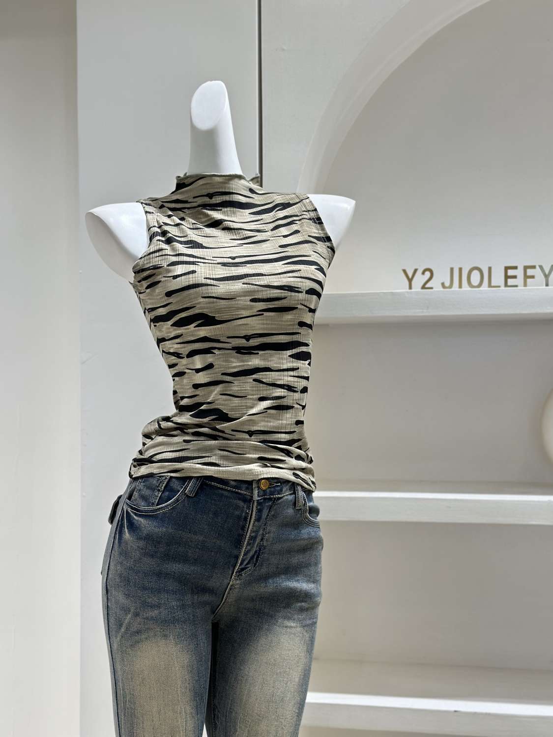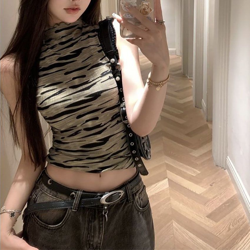 【月销10万】半高领迷彩背心女夏季修身显瘦设计感别致甜辣小上衣