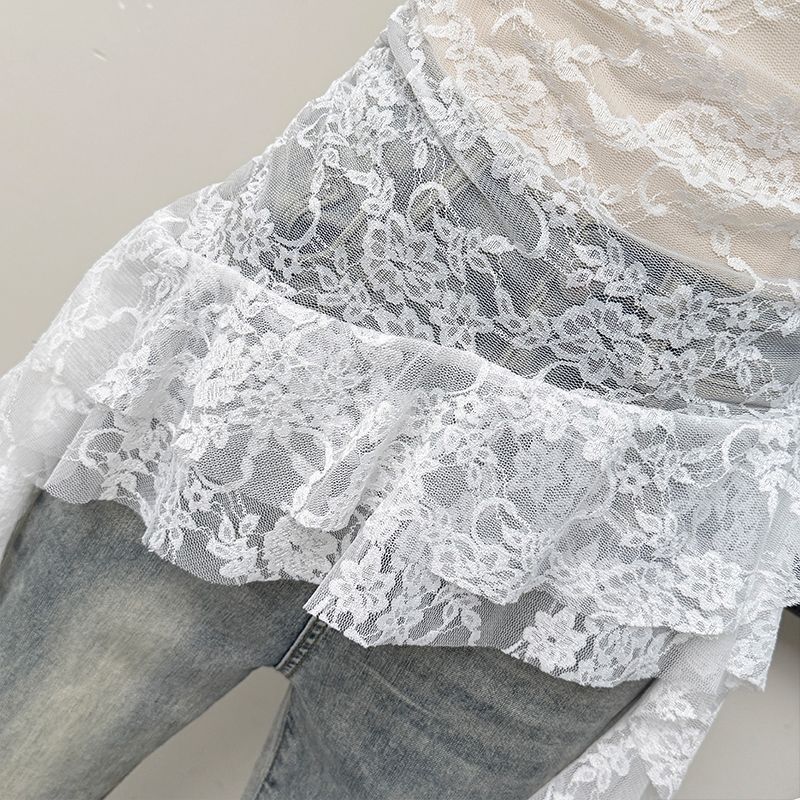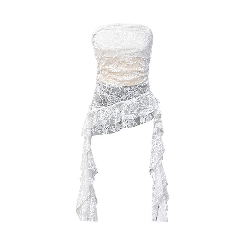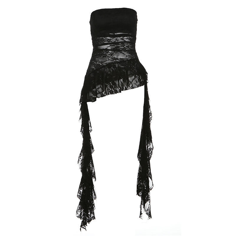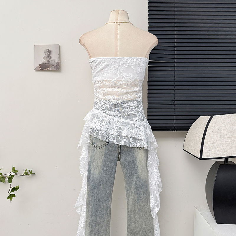 【月销10万】荷叶边镂空勾花蕾丝抹胸背心女辣妹纯欲修身显瘦上衣