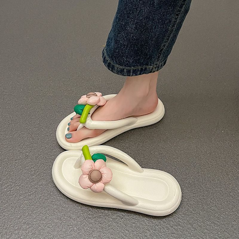踩屎感软底凉拖鞋女外穿夏季新款可爱花朵人字拖防水沙滩鞋